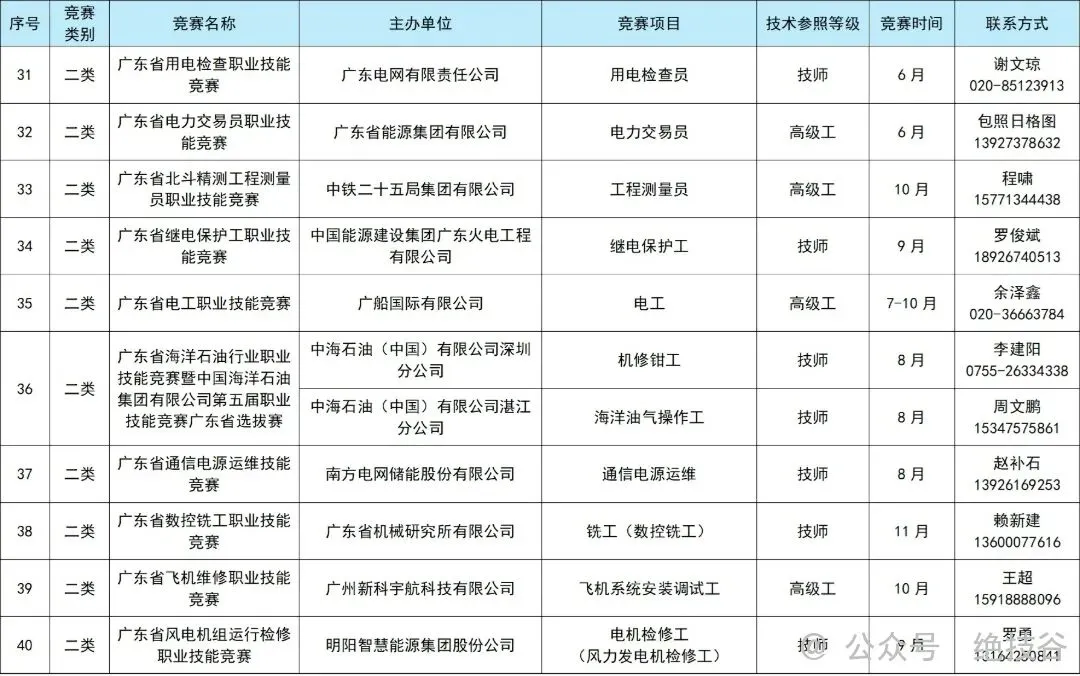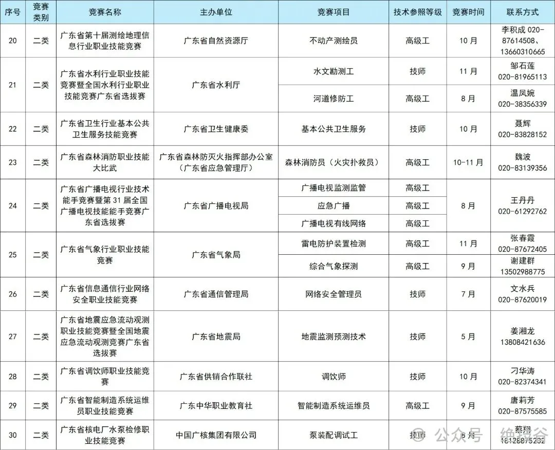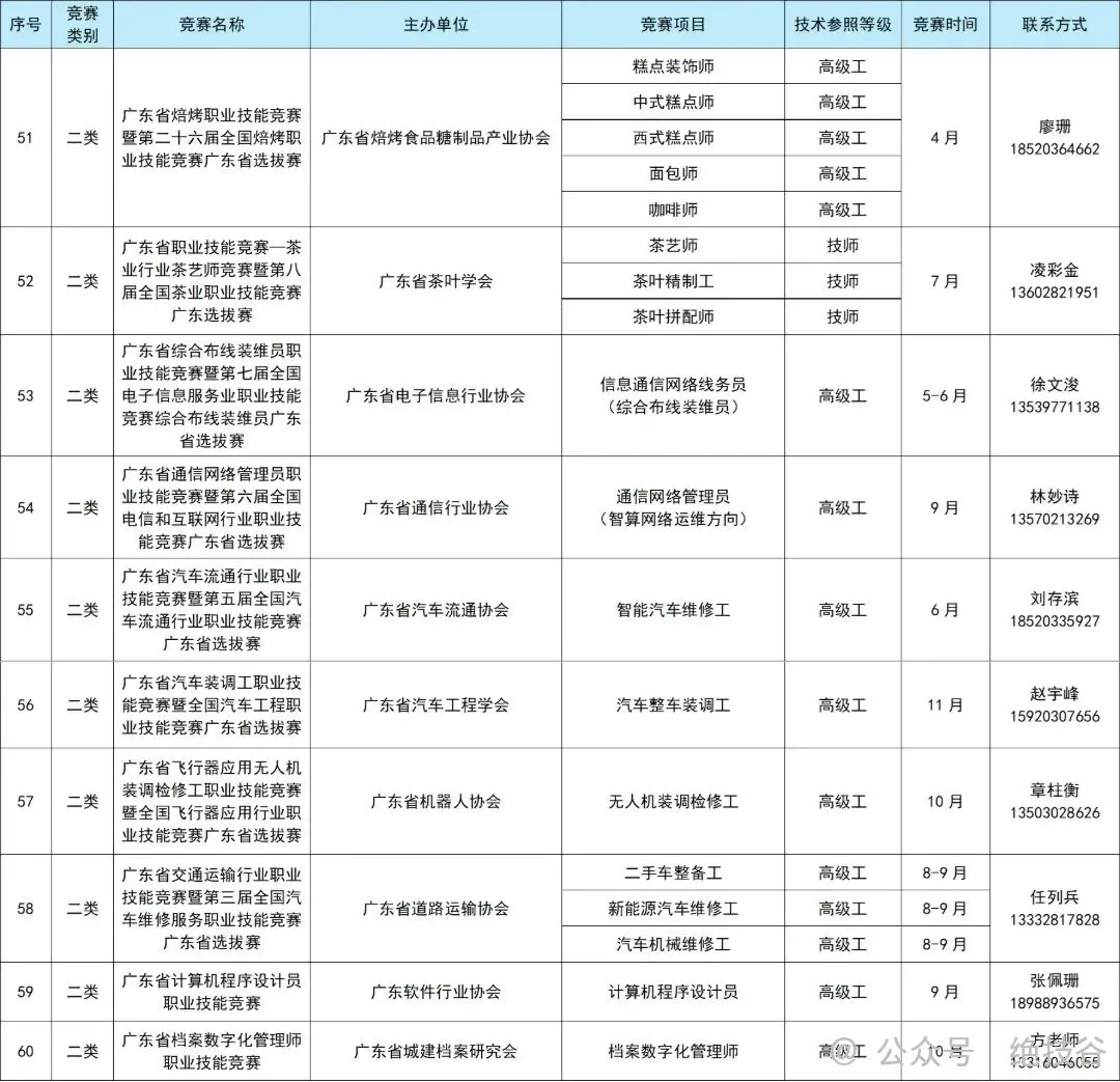 1.2026年广东省行业企业职业技能竞赛计划表
