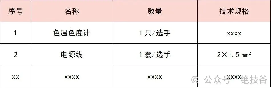 1.xxx项目赛场提供设施、设备清单表