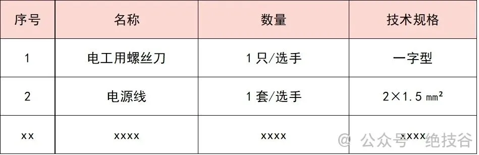 2.xxx项目选手自带工具、材料清单表