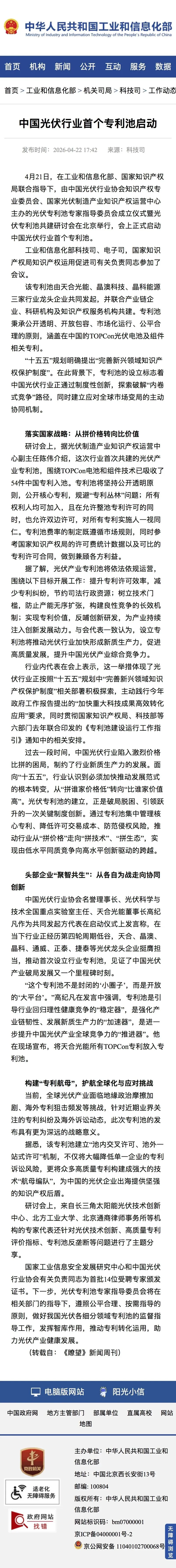 工信部刊发《中国光伏行业首个专利池启动》,官宣这一行业里程碑事件