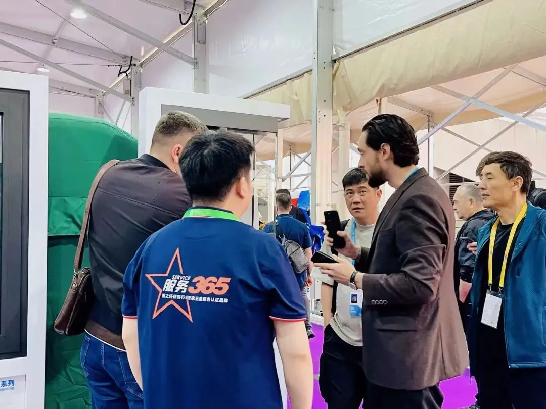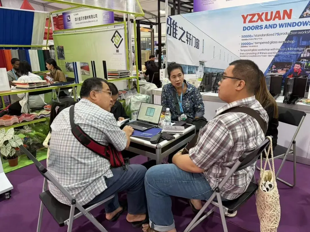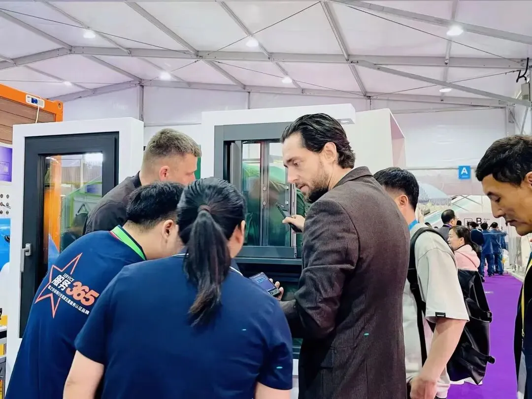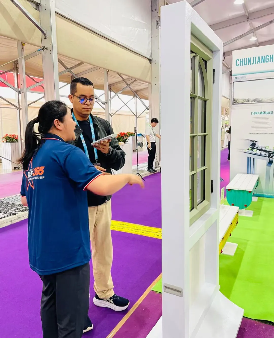 现场人流不断,往来客商或亲手推拉窗扇,感受启闭的顺滑质感;或仔细查看型材、胶条等细节,询问产品工艺与耐用性;不少客户还现场开展设计对接,沟通户型方案、核对定制图纸,落实尺寸与落地细节。工作人员全程在岗,耐心解答每一个疑问,从产品参数到生产流程,从定制设计到出口适配,一一细致回应。