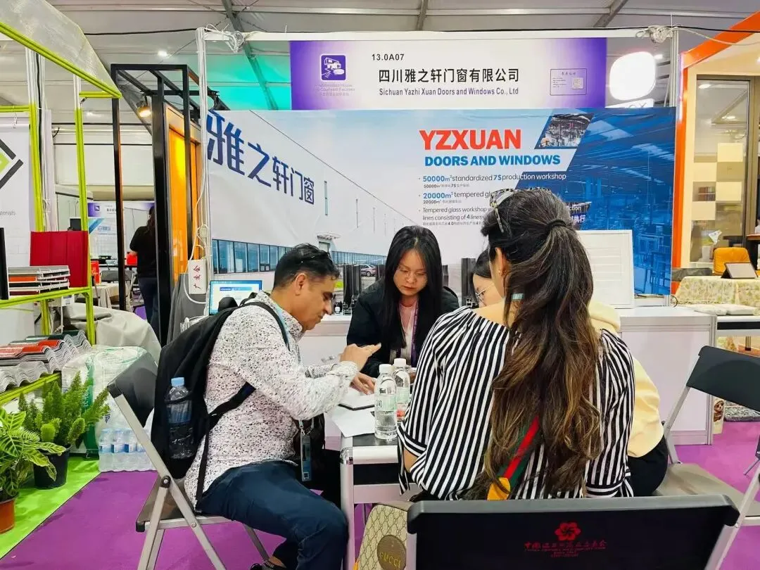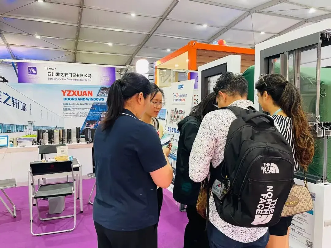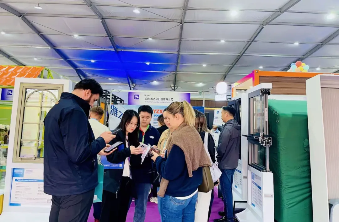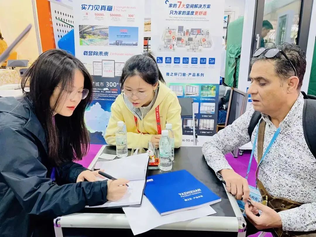 展会仍在如火如荼进行中,雅之轩门窗的展位始终保持着较高人气。来自中东、东南亚、欧洲等地区的采购商络绎不绝,有的带着本地建筑需求前来咨询适配方案,有的对比多款产品后,明确表达合作意向。