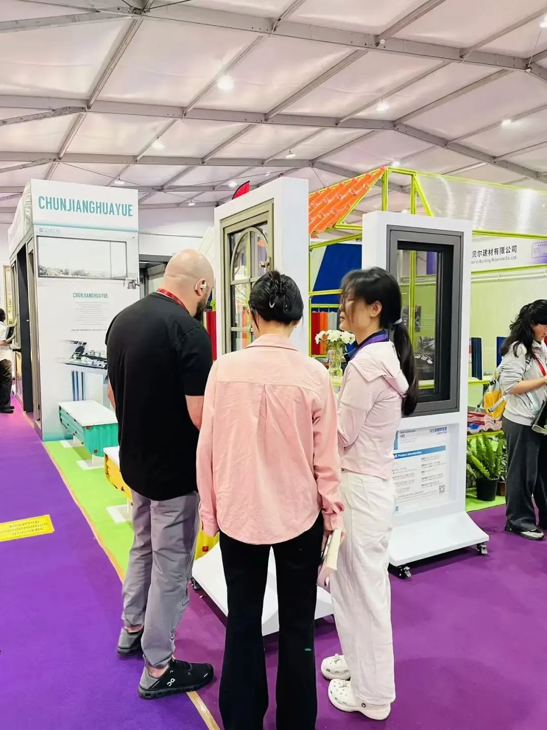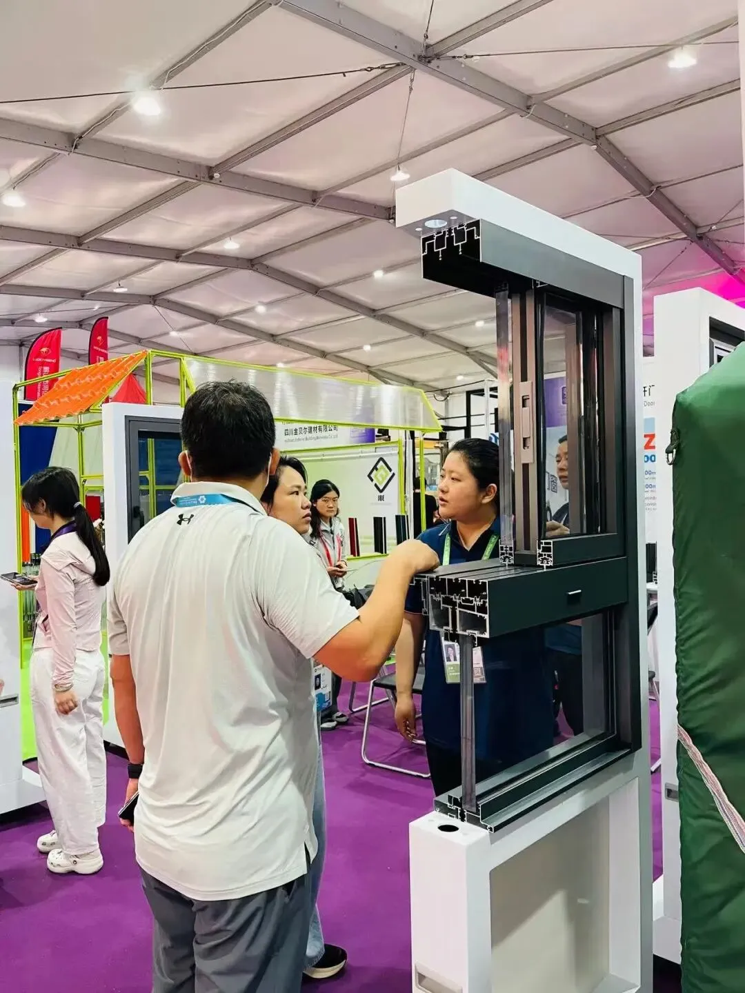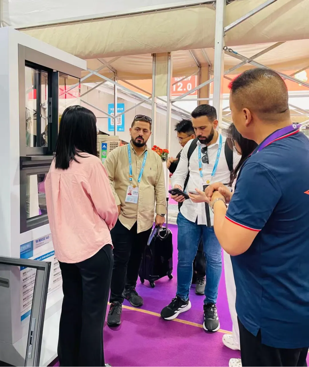展会仍在如火如荼进行中,雅之轩门窗的展位始终保持着较高人气。来自中东、东南亚、欧洲等地区的采购商络绎不绝,有的带着本地建筑需求前来咨询适配方案,有的对比多款产品后,明确表达合作意向。