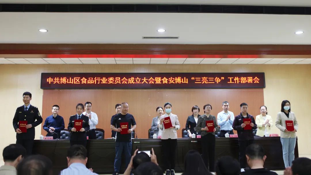 近日,中共博山区食品行业委员会成立大会暨食安博山“三亮三争”工作部署会在淄博市博山区市场监管局召开。市市场监管局三级调研员崔慧涵出席会议并讲话,区委常委、副区长李林出席会议并致辞,区市场监管局党组书记、局长刘持会主持会议,市市场监管局食品抽检和特食监管科科长江玉臣,个体私营经济发展促进科科长赵冲,区委组织部副部长、区委两新工委书记燕锋,区市场监管局党组成员、区委两新工委副书记王成刚参加会议,全区14个食品行业党支部、近100名食品生产经营党员、食品安全监督员和志愿员代表参会。崔慧涵在讲话中强调,要加强分类指导,把食品行业的“小个专”党组织建起来、强起来,推动开展标准化规范化建设,积极打造食品领域“小个专”党建工作样板。要加强食安建设,丰富交流培训、观摩学习、信息技术等服务,推动行业诚信体系建设。要加强示范引领,深入开展“三亮三争”工作,发挥广大食品党员户表率作用以及食品安全“五员”职能优势,共同助力品牌提升建设。要加强工作机制,建立健全联席会议、会商报告、统筹协调、长效发展等工作机制,积极帮助市场主体纾困解难,推动党建质量和食品质量的双提升。李林在致辞中指出,博山区坚持党建共建,积极探索非公有制企业党建新领域,创新“党建引领+教育引导+示范带动+服务保障”的工作模式,将组织优势转化为行业发展的“红色动力”,逐步实现以党建引领基层治理。博山区将持续在“党建+”模式的赋能下,把实施党建质量与食品质量“双提升”作为一项系统工程来抓,将基层党建工作融入具体载体,不断增强党的组织活力,带动行业实现提质增效。会议分两个阶段进行。第一阶段会议宣读了中共博山区食品行业委员会批准文件及博山区食品安全“五员”聘任表彰文件,为博山区食品行业党委、外卖行业综合党支部进行揭牌,为外卖骑手食品安全监督员代表、食品安全志愿员等代表颁发聘书,为在食品安全工作中表现突出的优秀“三员”(食品安全员、食品安全包保员、食品安全监督员)颁发荣誉证书,相关食品行业代表进行发言。第二阶段区市场监管局相关科室就食安博山“三亮三争”活动开展及具体规范进行安排部署及培训。