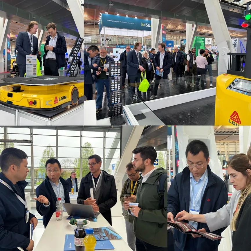 本届汉诺威展会上,临工智科重点展示的三款产品引发了广泛关注:叉车AGV具备高精度激光导航举升能力,适配集装箱卡车和自动化仓储场景;平台AMR以紧凑尺寸和高机动性为特点,搭载举升机构,适应复杂工厂物料流转需求;合装AGV适用于商用车、乘用车及电动车辆的合装生产线,搭载磁导航与无线充电系统。