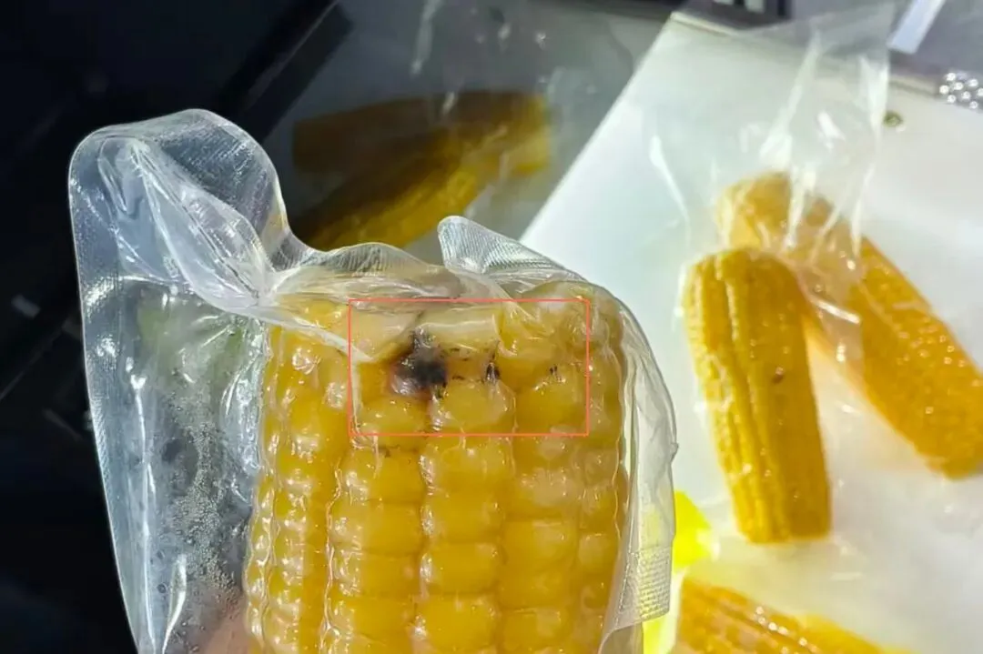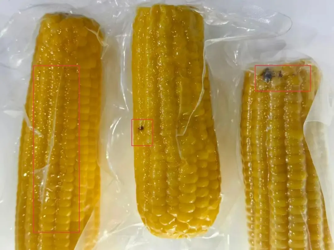 针对真空袋装玉米这类外形不规则、软袋褶皱多的产品,太易多面检测型视觉检测机可配置多达10个检测视角,无死角识别包装表面毛发、脏污、喷码不良、包装破损等各类缺陷,现场演示效果吸引众多观众。