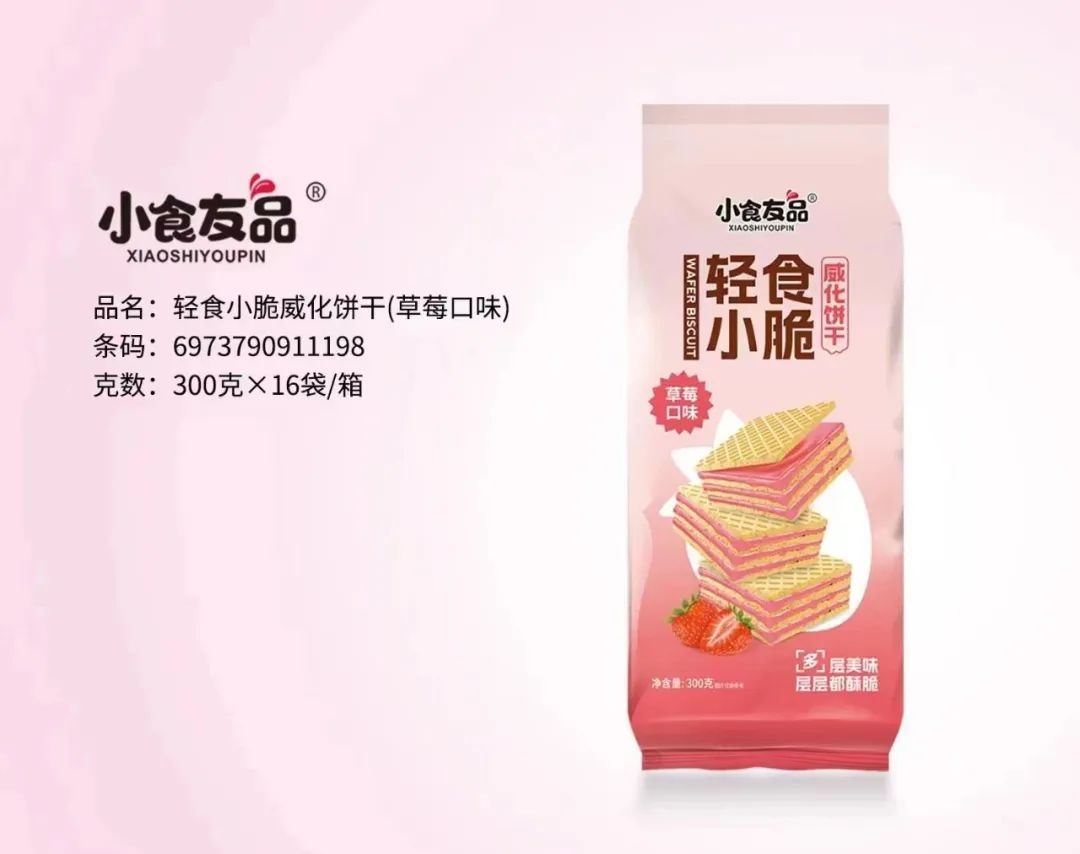 产品介绍:新品上市,“吻脆”干脆面,五种口味混合,口感酥脆,满口留香。适合商超、电商、社区团购、零食屋、水果店等渠道销售!