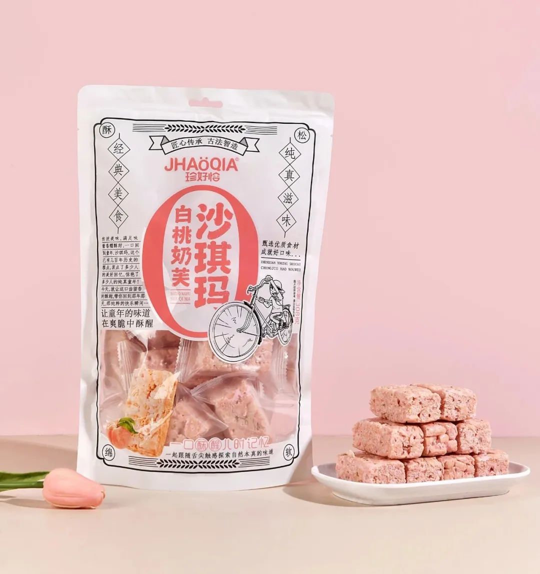 产品介绍:珍好恰奶芙沙琪玛采用新西兰进口奶粉,其中还添加了蛋白粉,软糯轻甜,酥软爽口,不粘牙。