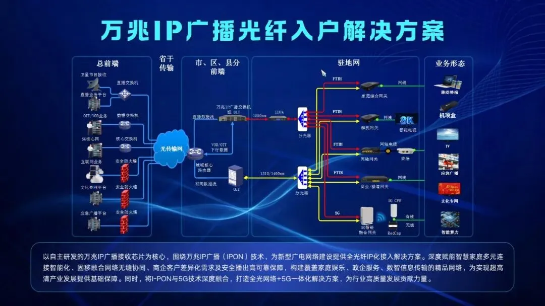 第三十二届中国国际广播电视信息网络展览会(CCBN)在北京首钢国际会展中心圆满举办。吉视传媒旗下北京吉视汇通科技有限责任公司,携万兆IP广播光纤入户解决方案重磅登场,以自主芯片核心技术,为新型广电网络建设注入强劲新动能。依托吉视传媒“十五五”规划战略布局,用新质生产力重塑发展格局,吉视汇通始终以科技赋能数智转型,聚焦广电网络全光纤IP化升级。本次展会推出的万兆IP广播光纤入户解决方案,以自主研发万兆 IP 广播接收芯片为核心,构建全场景、全链路、高可靠的光纤接入体系,具备高质量传输、高安全可靠、低成本覆盖三大核心优势。北京吉视汇通技术支持工程师孙大银在现场介绍,该方案可稳定承载277套4K超高清节目、83套8K超高清节目,全面满足4K/8K、AR/VR、裸眼3D等新一代视听传输需求,是打造广电精品网络、夯实数智化底座的关键支撑。这项技术成果,与吉视传媒“高质量网络、高品质服务、高安全保障”三大支撑高度契合,更是落实科技强企、数智强企路径,向国内领先广电数智信息服务运营商转型的硬核实践。凭借更低部署成本、更高传输效率、更强安全能力,万兆IP广播技术将广泛赋能智慧家庭、数字政务、智慧文旅等多元场景,助力千行百业数智化升级。立足新起点,吉视传媒将持续以核心技术突破驱动创新发展,加快万兆IP广播技术落地应用,以新质生产力筑牢新型广电网络根基,为数字吉林、文化强省建设与全国广电行业高质量发展贡献更大力量。