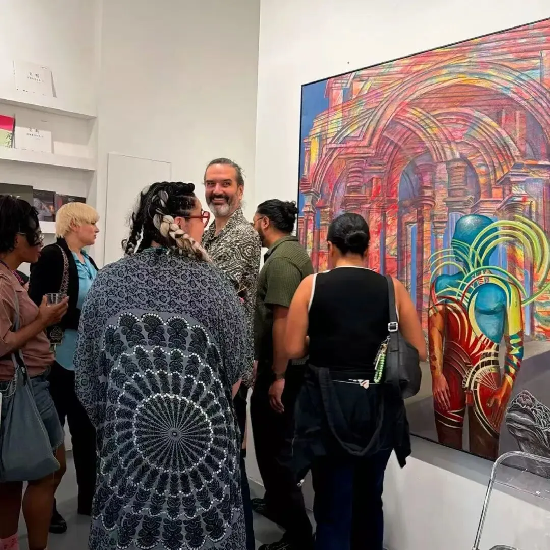 《Cosmic Women》(1975)展示于画廊橱窗,这件作品向女性艺术家致敬——她们在超现实主义与魔幻现实主义发展中的重要地位,直到近年才逐渐获得更充分的认可。