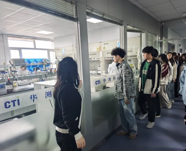 本次活动以产教融合、校企协同为核心,通过企业参观、专题讲座、现场互动、数字化体验等形式,聚焦检测行业财务核算特点、收入确认、成本归集、税务处理与财务数字化应用,帮助学生打通“理论—实务—岗位”的转化链路,明晰行业人才需求与职业发展方向。活动当天,师生一行在企业讲解员带领下,依次参观实验室、业务办公区及财务核算中心、数字化财务管理中心,直观了解检测行业核心业务流程,让课本知识“活”起来。