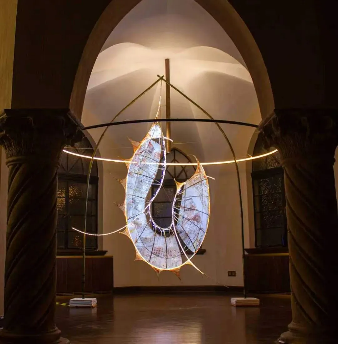 曹斌华 春蚕 装置 材料:竹条、铁丝、布料、灯带、珍珠、胶布220×220×55cm 2026