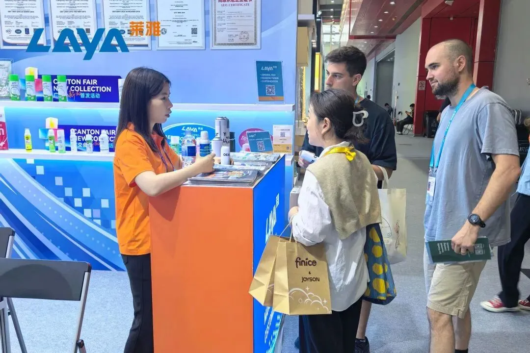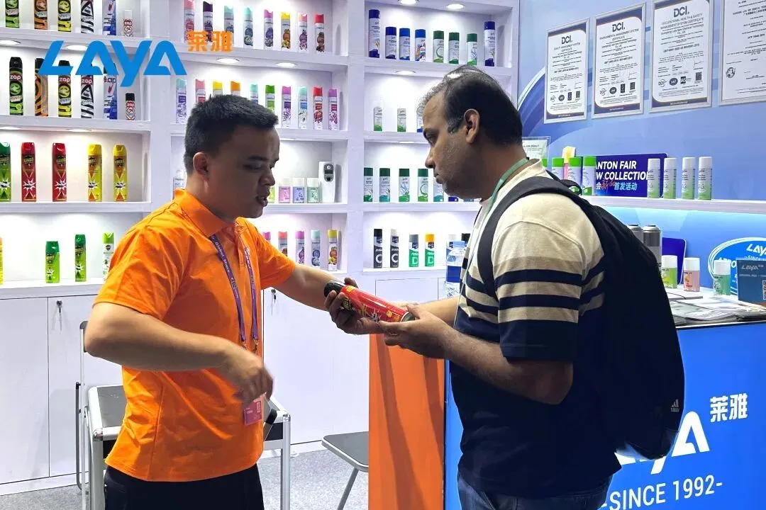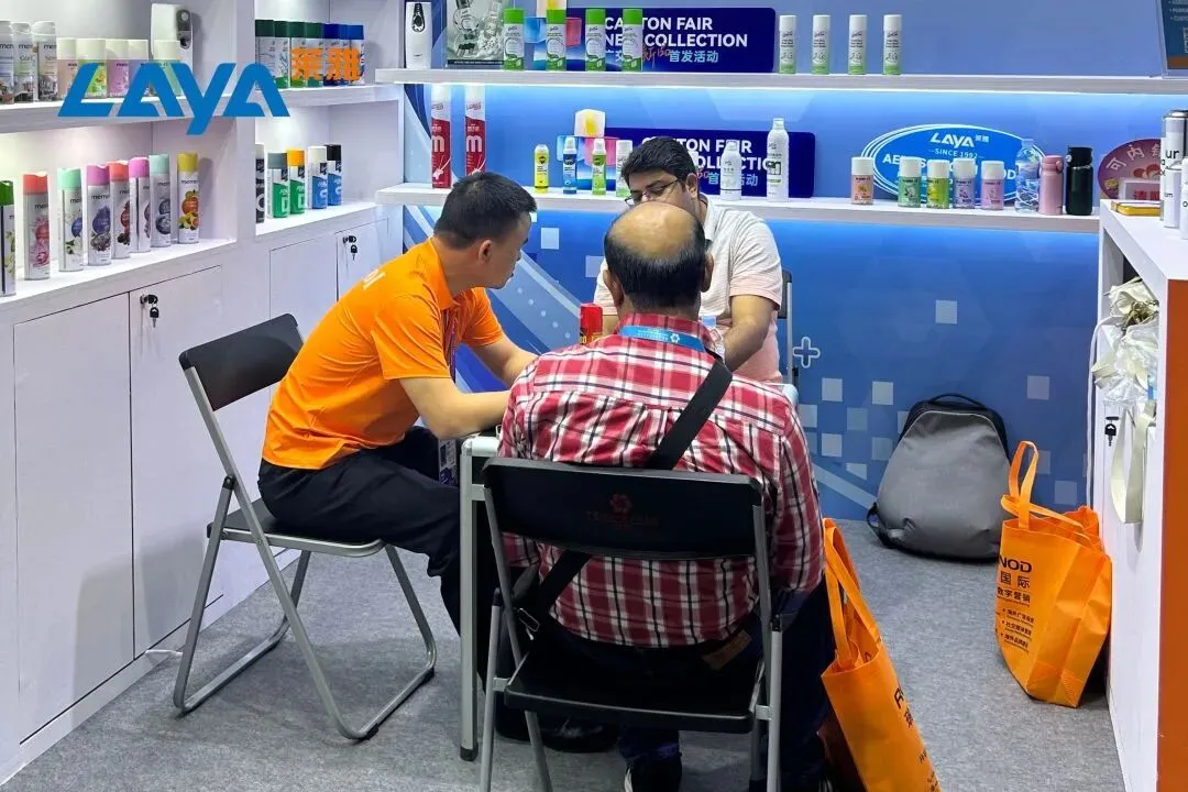 广交会二期第三日,莱雅展位热度不减。凭借优质的气雾剂产品及专业的定制化服务,莱雅展位吸引了全球采购商纷至沓来,现场互动频繁,业务拓展势头持续向好。
