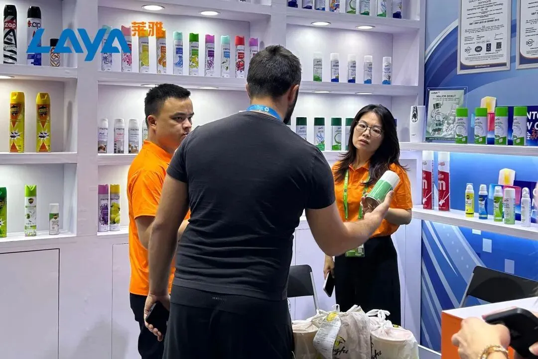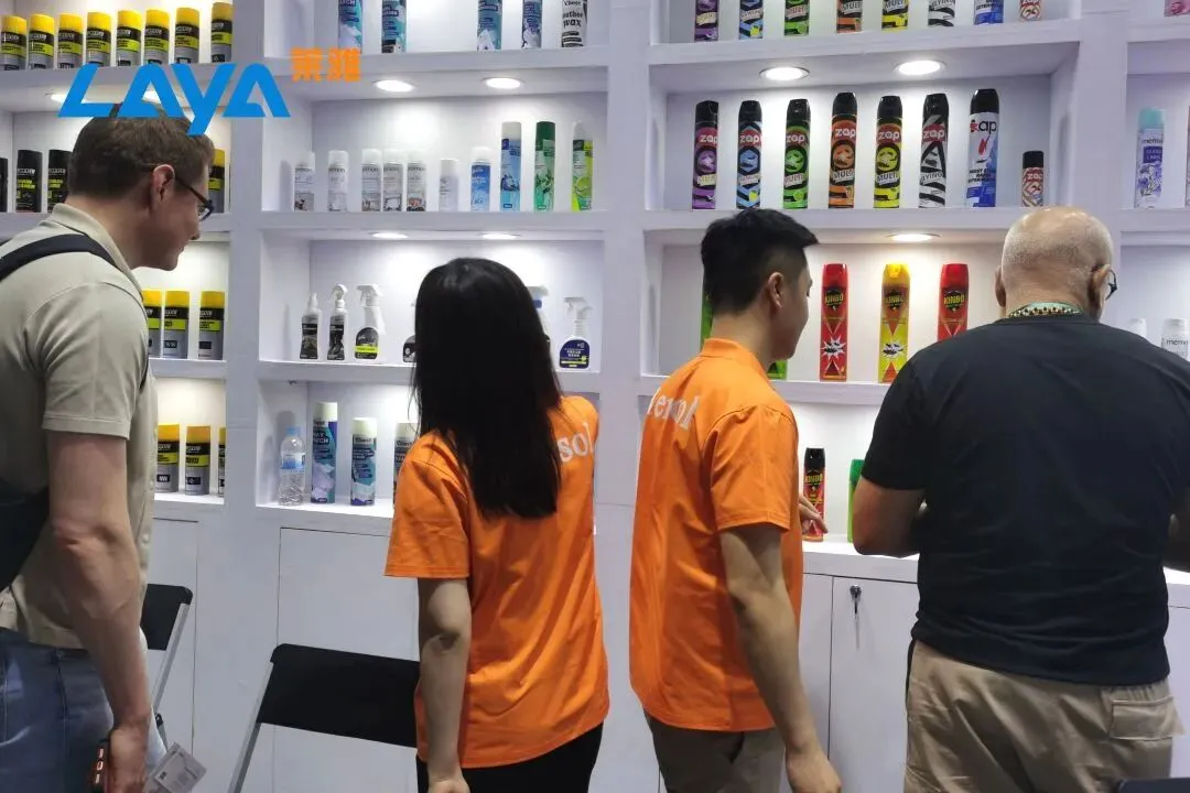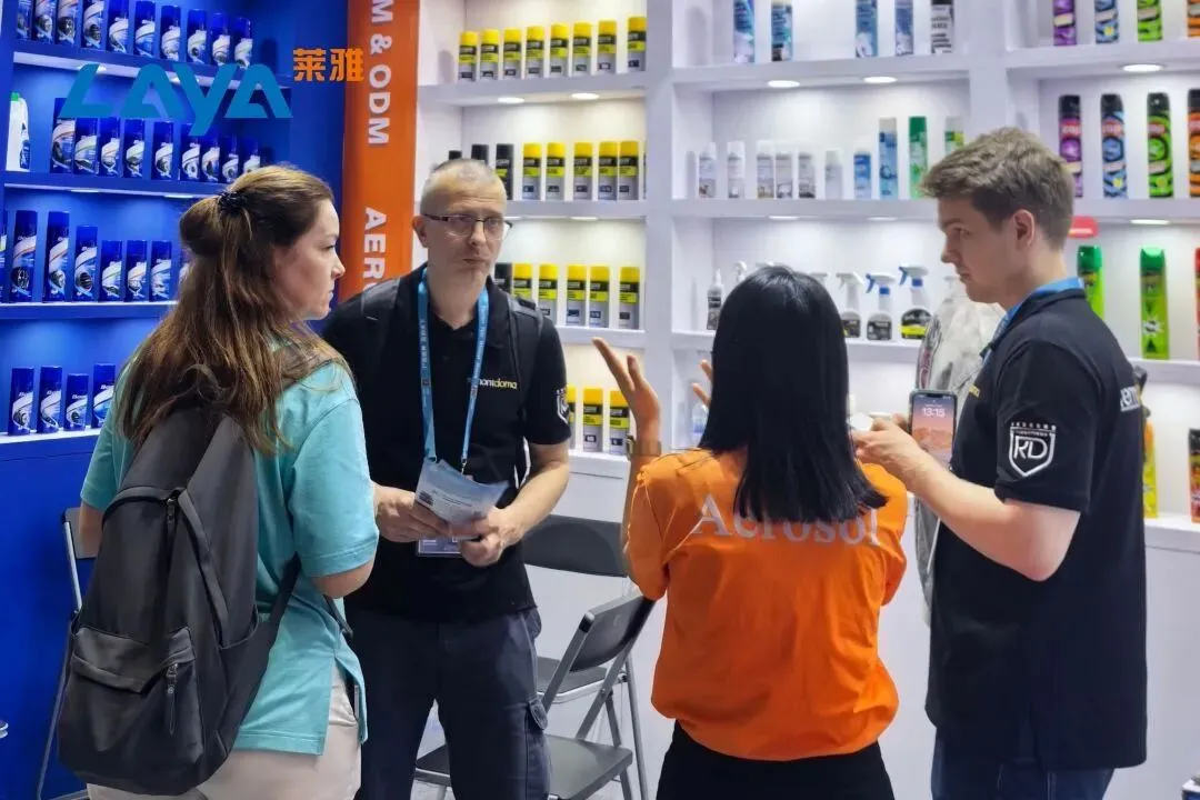 多位采购商在详细咨询了产品功效、罐体密封性、耐压程度等细节后,直观感受到了莱雅的气雾剂产品在稳定性、安全性与合规性上的可靠保障,并对莱雅提供的个性化定制服务表示了高度认可。