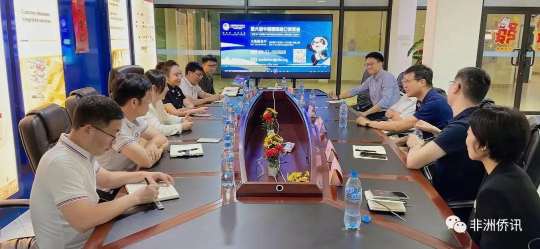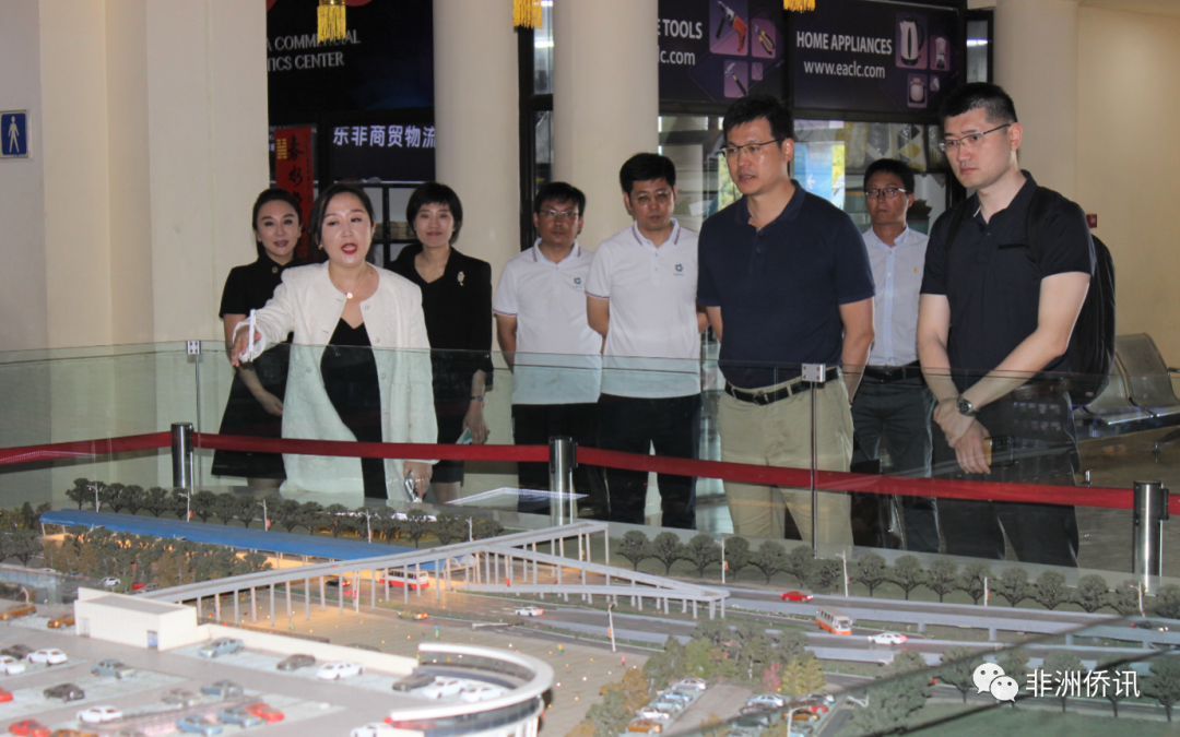 2023年5月14日,中华人民共和国驻坦桑尼亚联合共和国大使馆经济参赞褚昆,中国国际进口博览局副局长宋尚哲一行参观考察东非商贸物流中心项目,并就2023年中国国际进口博览会参展布展事宜进行沟通。