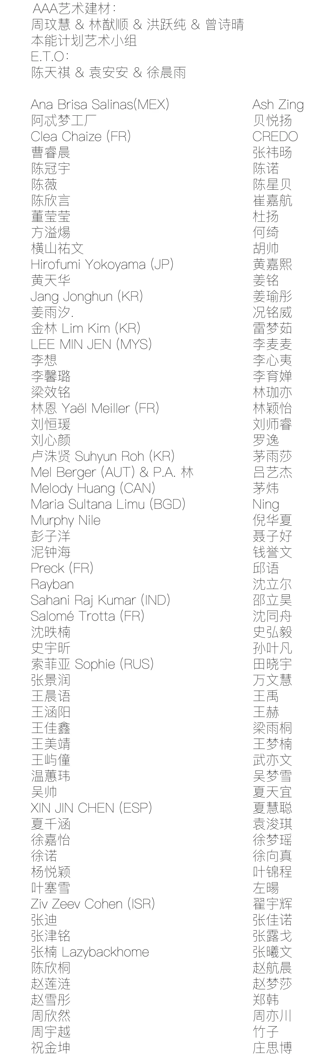 参展艺术家名单