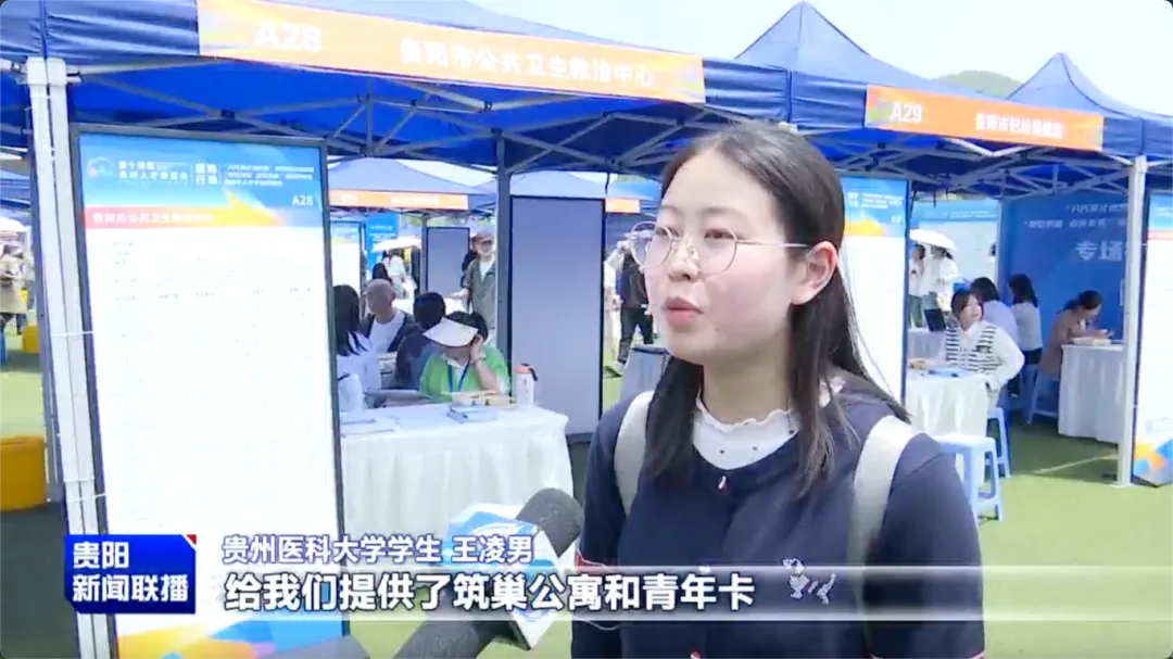 贵州医科大学学生 王凌男:给我们提供了筑巢公寓和青年卡,贵阳贵安的人才政策对我们来说福利非常好,这也是我想留下来的原因。