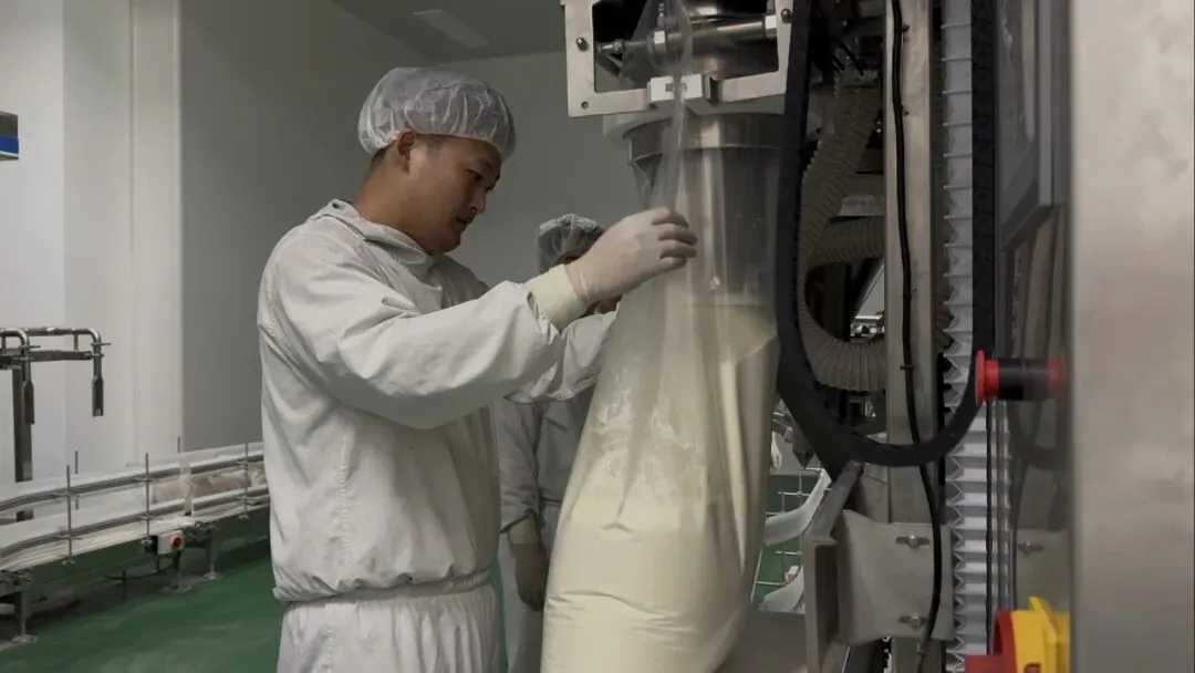 干燥塔生产线作为本次首产的核心环节,运行状态平稳有序。车间内,投粉、供料、内包各道工序环环相扣、衔接顺畅,随着最后一道内包工序顺利完成,首批次乳粉成功下线,干燥塔产线实现全流程贯通。