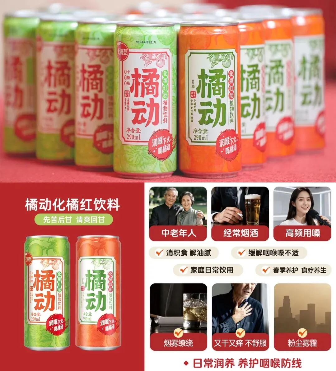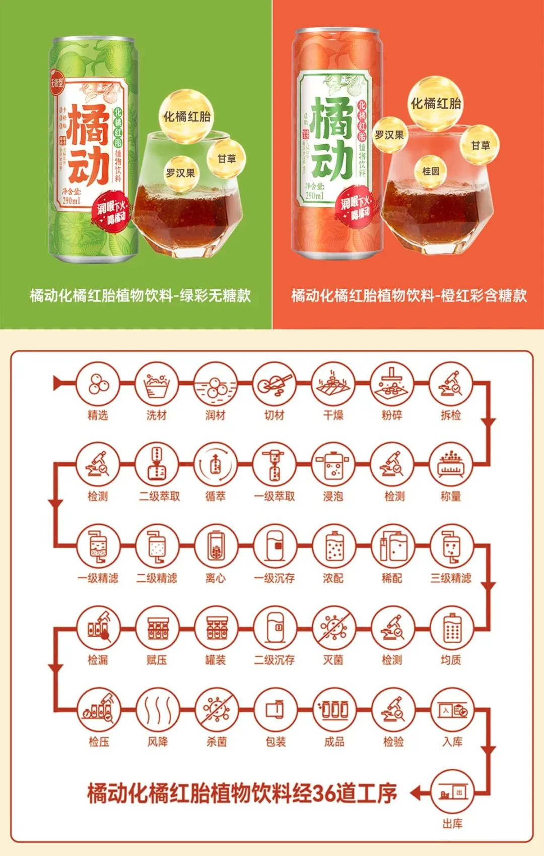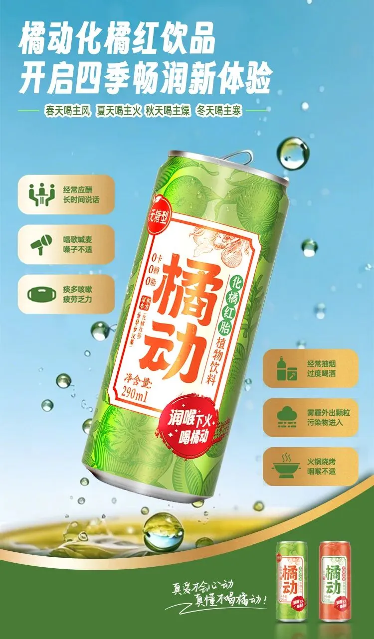 两款均纯植物配方,保留草本原味。从两会热点的“南方人参”,到手边一瓶清润饮品,橘动饮料坚持用真材实料,让道地化橘红喝得方便、喝得安心。