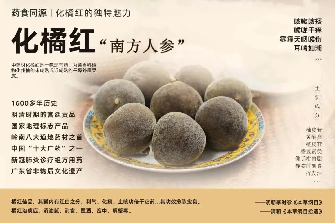 所用化橘红均产自化州——当地土壤富含礞石等微量元素,气候条件独特,所产化橘红道地性突出。我们选用陈化3-5年的胎果(化橘红幼果经陈化后,柚皮苷、黄酮等成分含量较高),每批原料符合化橘红地理标志产品相关标准,不掺外地果、陈果。