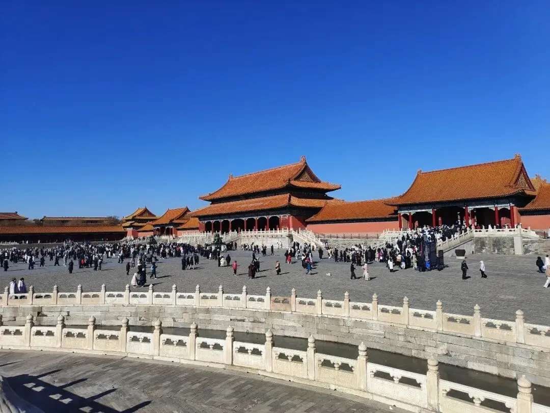 其中,对于太和殿,建议远远地看看就行了,或者是到月台上看看,不用到近前去挤了,即使挤到了殿门前的栏杆处,藻井也看不到,龙椅也看不清。