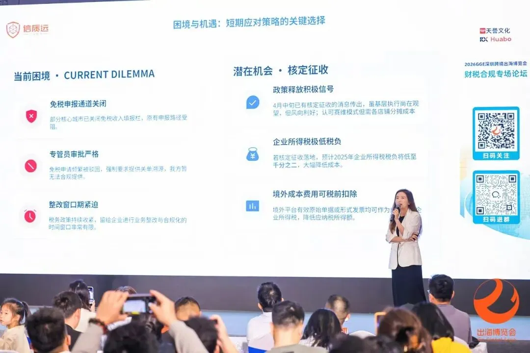 上午的 “2026跨境出海合规专场” 围绕财税合规、品牌护城河、B2B合规收款等卖家核心痛点展开实战分享,多位行业专家带来从回款合规到报关模式选择的全链条解读。