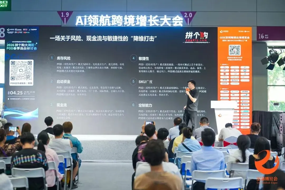 上午的 “2026拼个购大湾区POD春季选品研讨会” 聚焦POD模式驱动下的全球化新路径、AI与POD融合以及中国设计+全球履约的出海新生态,多位平台联合创始人及技术负责人带来前沿洞察。