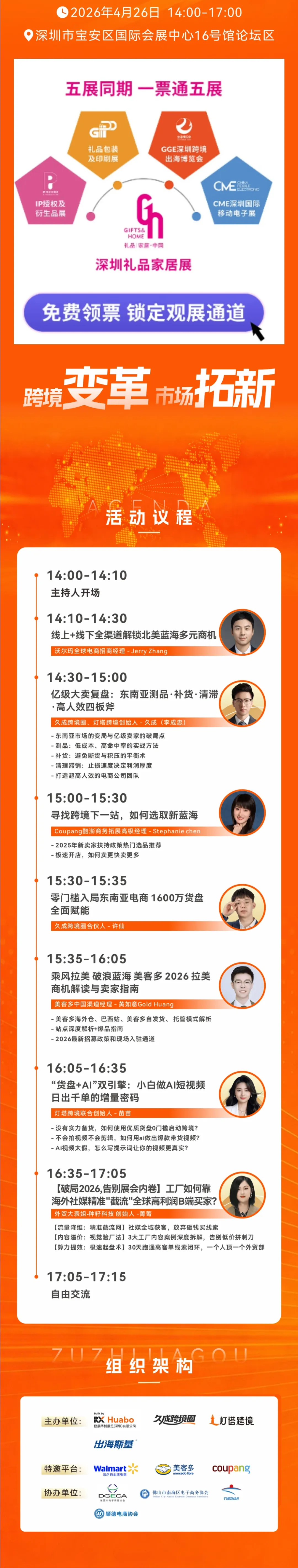 下午的 “亚马逊-链动春耕,新启全球” 官方专场,系统解读2026年亚马逊全球开店最新政策、AI重构选品的趋势与方法、透明计划品牌保护、新手卖家全景地图,以及美线跨境物流合规清关的进化逻辑,为不同阶段的卖家提供系统性成长指南。