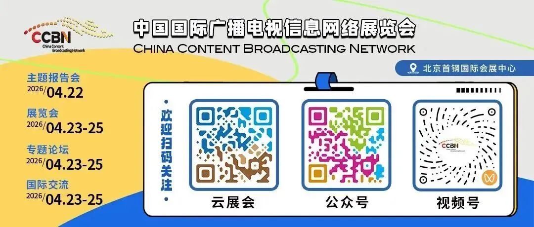 4月25日,由国家广播电视总局指导、广播电视科学研究院主办的第三十二届中国国际广播电视信息网络展览会(CCBN2026)在北京首钢国际会展中心圆满落下帷幕。本届展会以“广电视听更美好——数智创新 引领未来”为主题,全景展现超高清全链条、轻量化制播、广电视听服务和体验“双提升”、人工智能创新融合应用、新型广电网络建设、应急广播体系建设、监管监测智能化、智慧家庭和智能终端、沉浸式视音频、影视制作全流程、虚拟制作、多渠道网络协同、网络安全、OTT/IPTV、微短剧制作等领域创新科技产品和前沿应用实践,全方位彰显了CCBN作为全球视听行业发展风向标的核心引领作用。