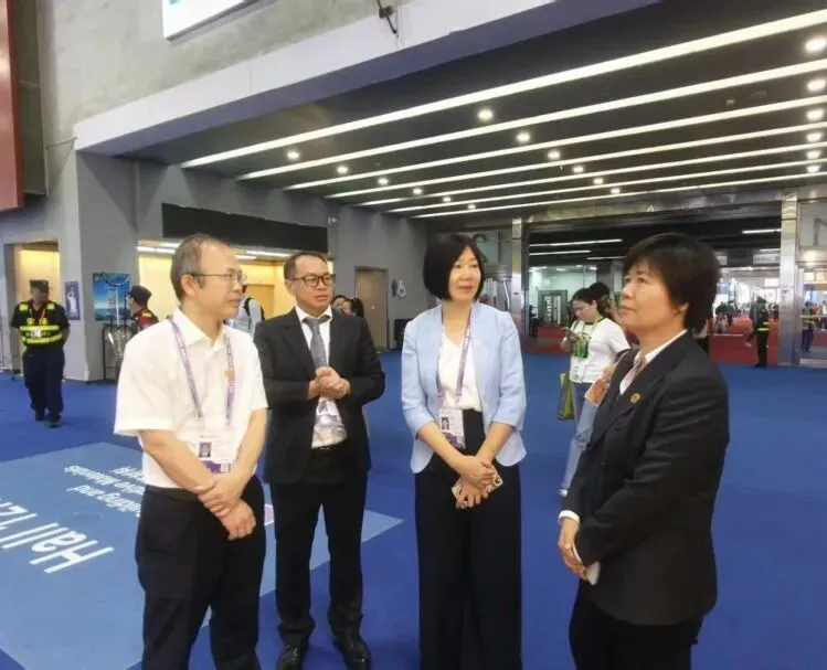4月25日上午,知识城集团党委副书记、总经理彭月梅莅临广亚展位参观指导,广亚控股集团董事长龙文陪同。彭月梅一行详细了解产品创新、客商对接及海外业务拓展情况,对本次展会整体效果、展出产品及团队风貌均表示高度认可,充分肯定了广亚现场的表现,并勉励团队紧抓广交会机遇,持续优化产品与服务,进一步深化全球合作。
