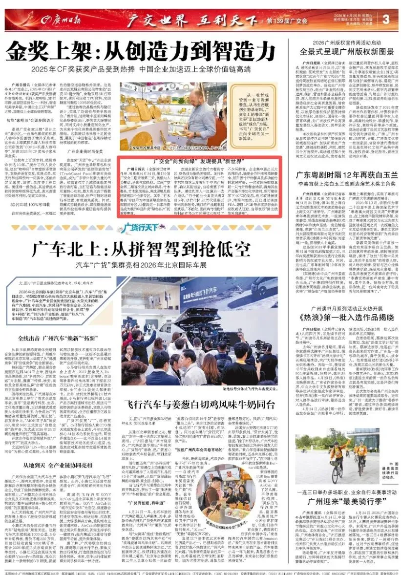 4月25日,广州日报刊发《广交会“向新向绿” 发现餐具“新世界”》,内容如下: