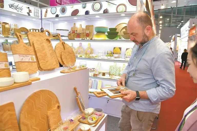 4月24日,第139届广交会二期开展第二天,展馆内人头攒动,洽谈气氛热烈。本届广交会第二期首次设立时尚饰品、竹木餐具、竹木家居用品、集成房屋及庭院设施四个全新专区。其中,“竹木餐具”专区作为本届新增的绿色低碳题材专区,让餐具这一日常消费品成为展示中国外贸“绿色名片”的重要赛道。