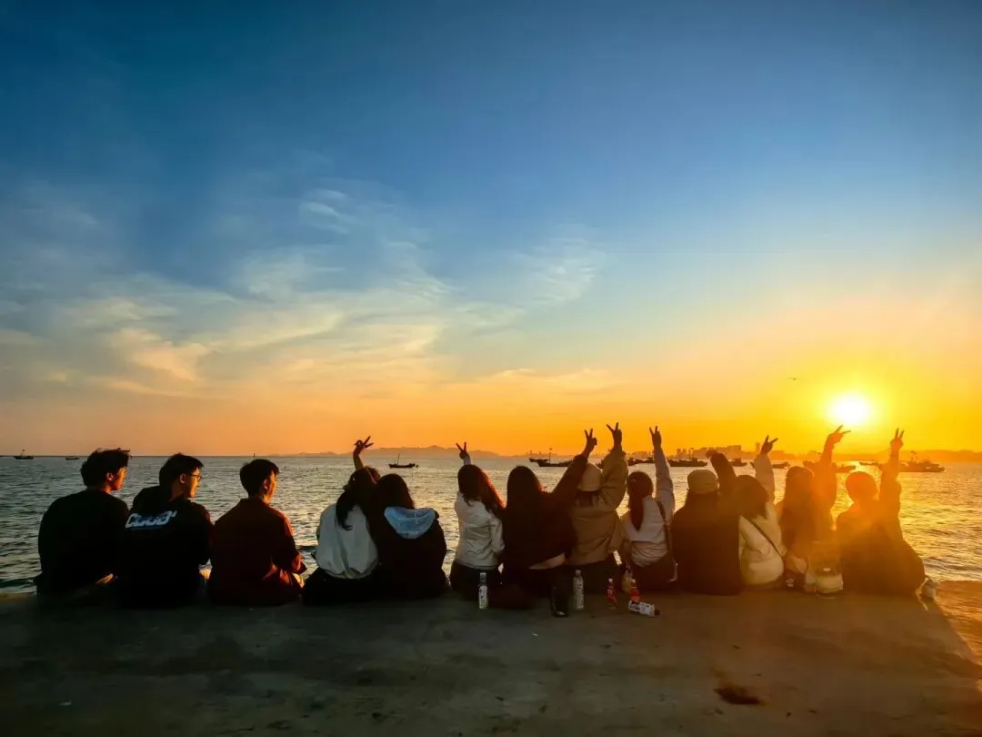 带着不舍的心情回了最开始的地方,潮水已经快要涨上了码头,大家坐在码头边上,把脚垂下去,走在后面的我看着夕阳洒在每个人身上,映衬出幸福的剪影,我当时想,这次旅行好像真的要结束了,我一定要把这样完美的群像记录下来,至少再久一点,再清晰一点。我招呼大家排排坐,拍下了我此生最满意的一张作品,但其实这已经是我在大家背后数不清多少次偷偷抹眼泪了。