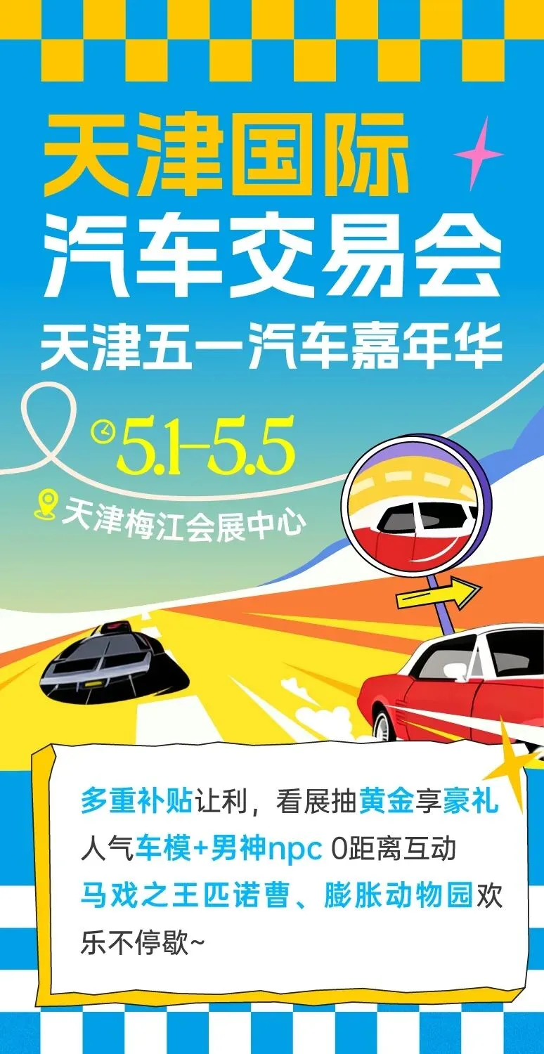 2026天津国际汽车交易会(也称“天津五一汽车嘉年华”)正式启动,响应全国两会 “汽车产业高质量发展” 号召,落实天津 “智能网联汽车产业升级” 部署,“津彩五一,智慧同行”为主题将于5月1-5 日天津梅江会展中心盛大举办。本届车展以“规模升级、体验优化、惠民优惠”为宗旨,打造集赏车、购车、亲子、休闲于一体的五一专属汽车盛会,成为假期家庭出游优选目的地。