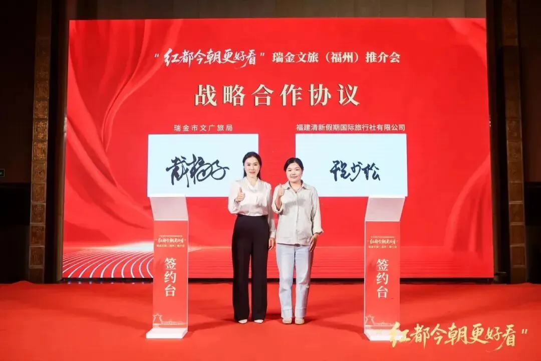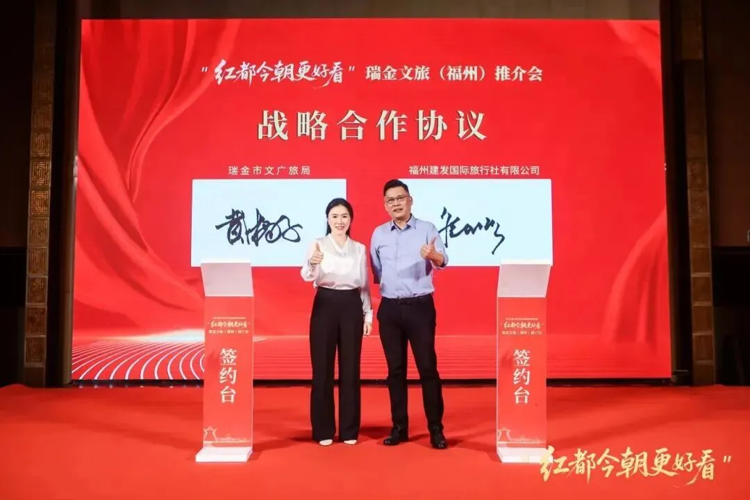 本次推介会还促成了文旅合作签约,旨在推动两地在旅游引客、红培研学等方面深度联动,为瑞金红色文旅产业增添新活力。随后,“闽赣同心游红都专列发车仪式”也隆重举行,宣告两地文旅协同发展开启新篇章。