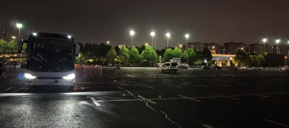 橡塑展最后一班车驶离国展中心北广场停车场