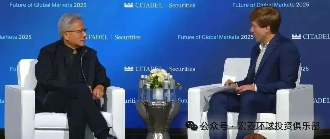 上图:2025年10月,在 Citadel Securities 举办的「Future of Global Markets 2025」活动现场,红杉美国合伙人 Konstantine Buhler与红杉 所投企业NVIDIA 创始人黄仁勋 展开了一场同台对谈。