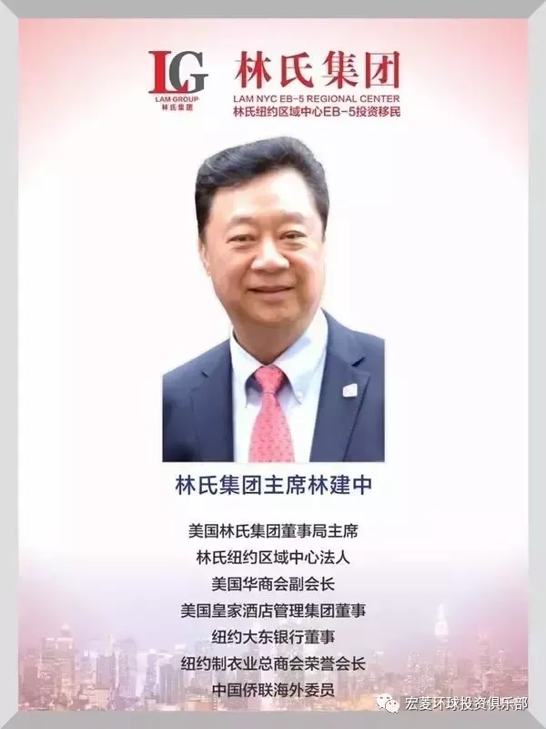上图:林氏集团主席林建中简介2015年9月25日,由两位世界闻名的商业巨子英国维珍集团总裁理查德•布兰森(Richard Branson)和美国酒店大亨林氏集团主席林建中(John lam)携手合作,投资7亿美金建造的纽约五星级维珍酒店于曼哈顿百老汇大道夹29街举行奠基仪式。坐落于全世界最昂贵地段的维珍酒店将是纽约十大建筑之一,也是一个为帮助更多中国精英投资移民建造的最稳健最有实力的投资项目,创造3400多个就业机会。