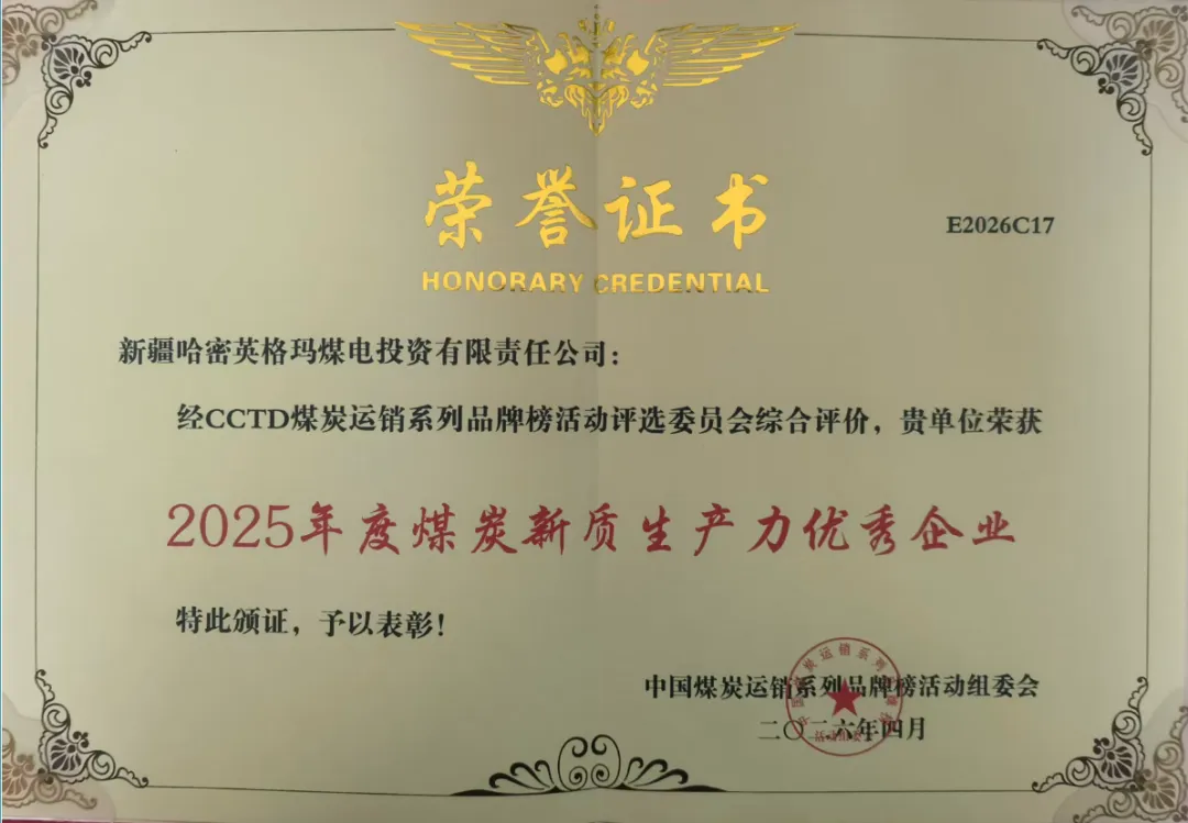 4月23日,由中国煤炭市场网主办的“中国煤炭市场高峰论坛”在成都召开。公司凭借在创新驱动、智能化建设及绿色高效发展方面的突出成果,荣获“2025年度煤炭新质生产力优秀企业”称号。哈密公司作为基建矿井,凭借在推动行业技术进步与转型升级中的积极作为获此殊荣。