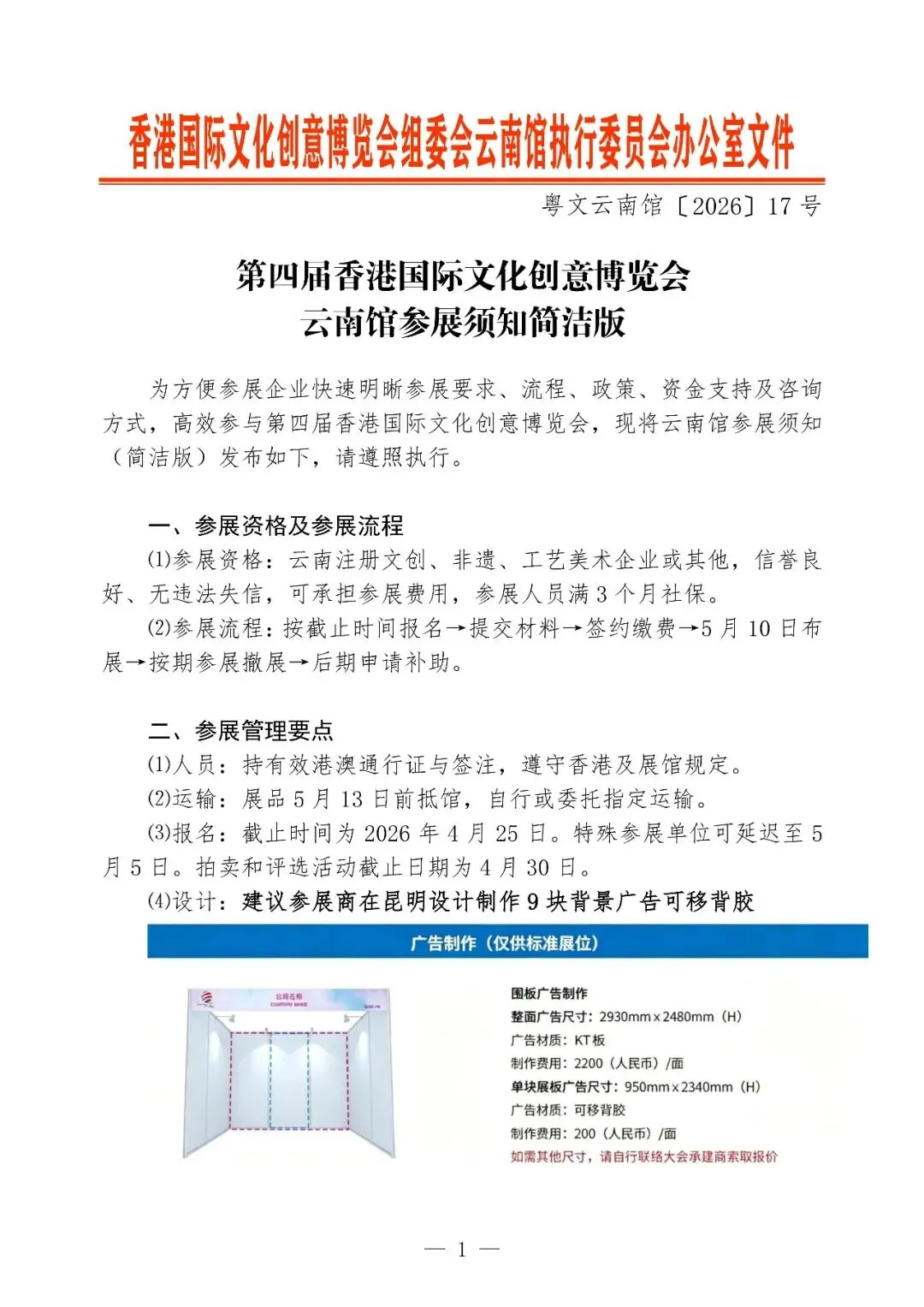 第四届香港国际文化创意博览会云南馆参展须知简洁版
