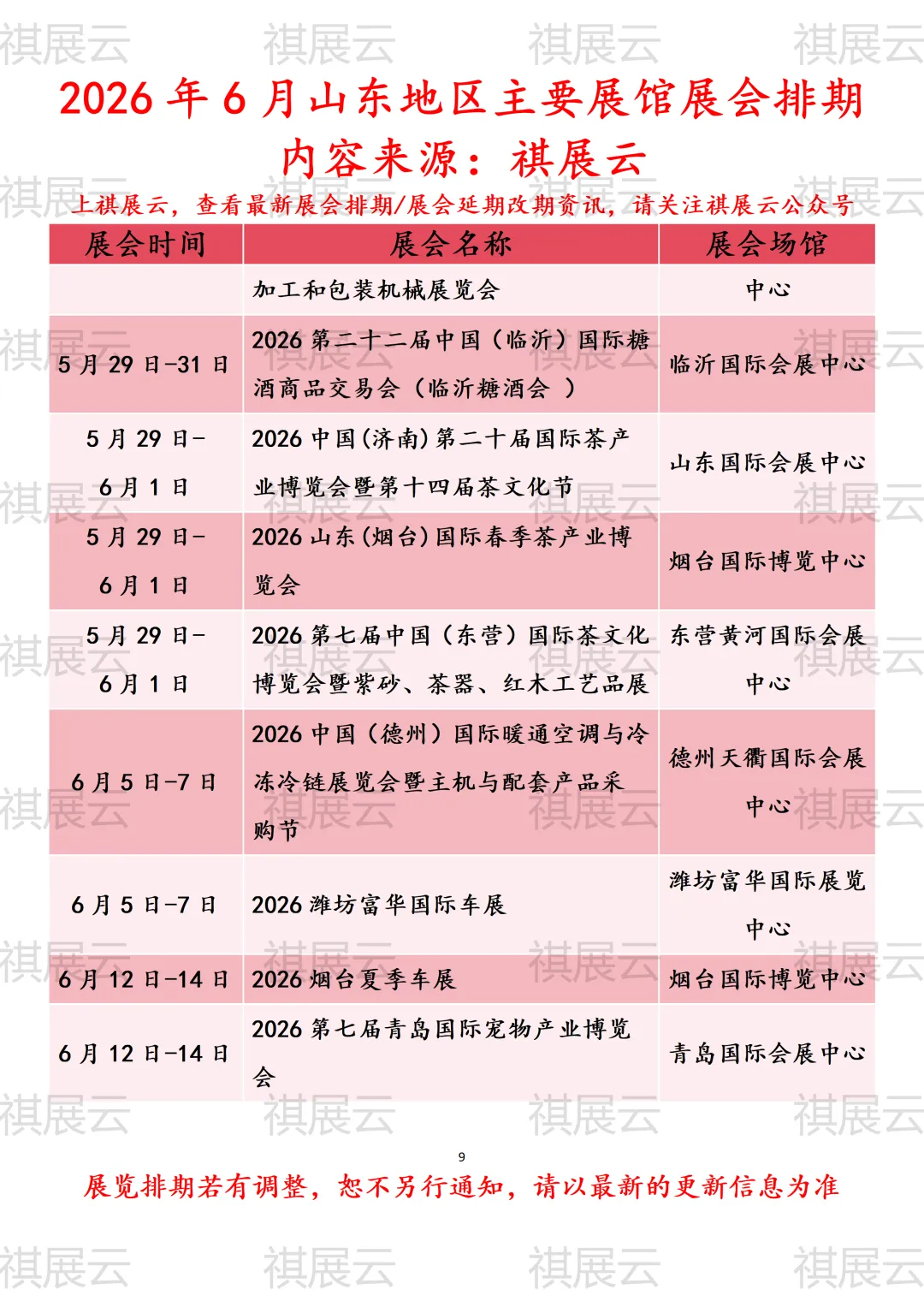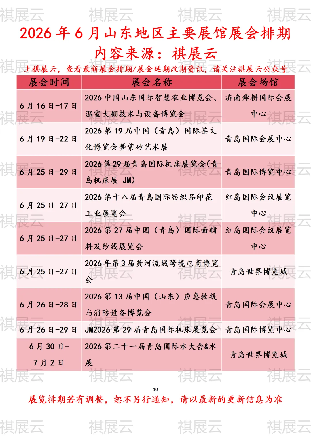 会展资讯丨山东地区(济南、临沂、青岛、烟台)主要展馆展览会2026年6月时间表