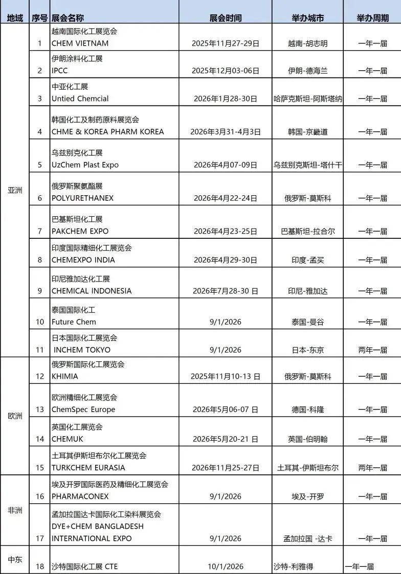2026年全球化工展会计划表