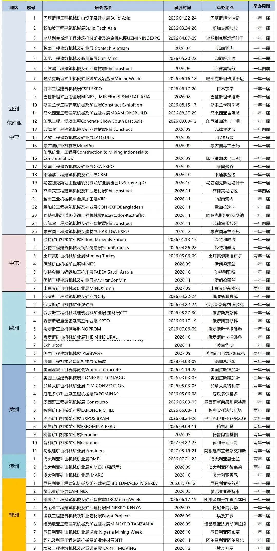 2026年全球工程矿业机械展计划表