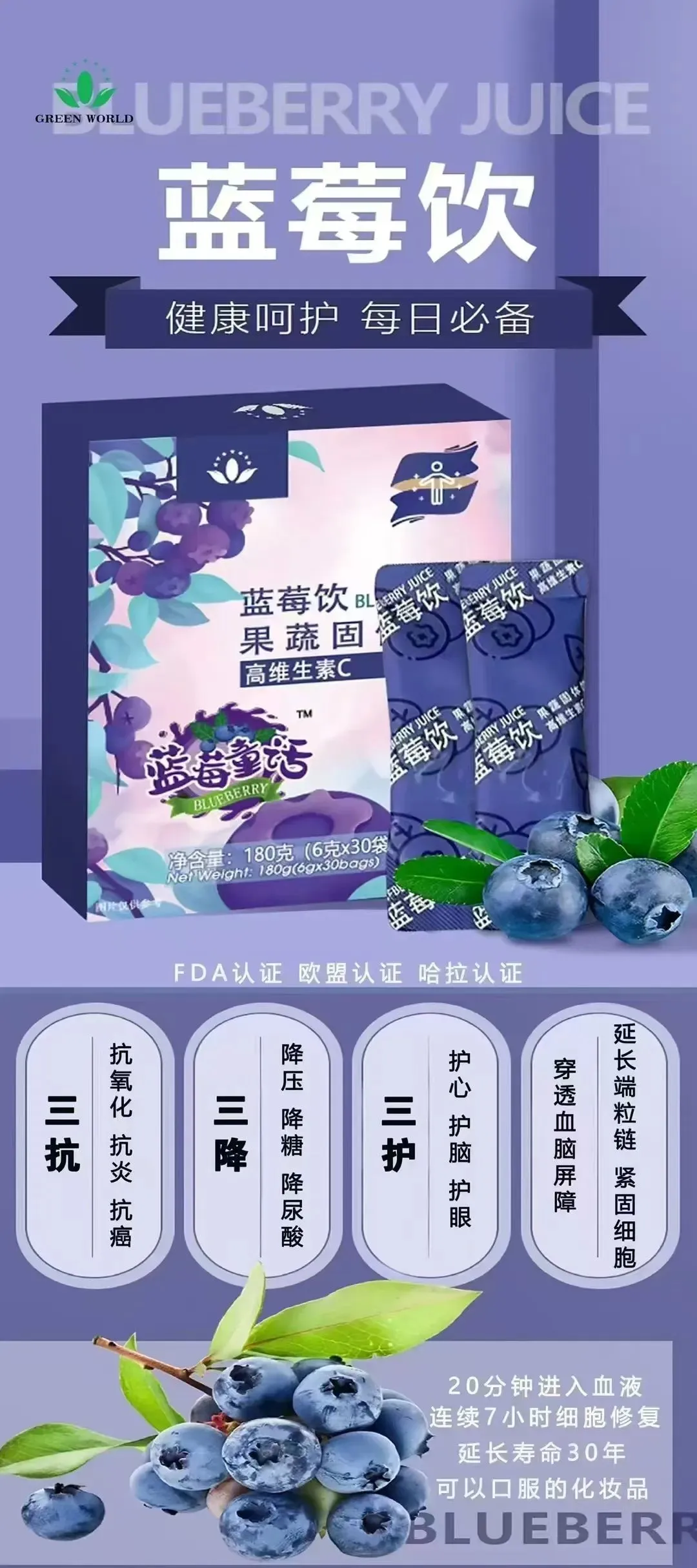 面向消费者的产品端,“诚信通天”这四个字更是沃德绿世界不敢逾越的红线。这些年大健康行业热了,不少企业打着蓝莓的旗号概念炒作,用劣质原料冒充高纯度产品,虚标功效,赚快钱。但沃德绿世界这么多年,始终坚持三个“不”:不做虚假宣传,不用劣质原料,不打价格战降品质。所有产品的原料都来自自有基地和长期合作的合规种植基地,每一批产品都要经过三重检测才能出厂,不允许不达标。