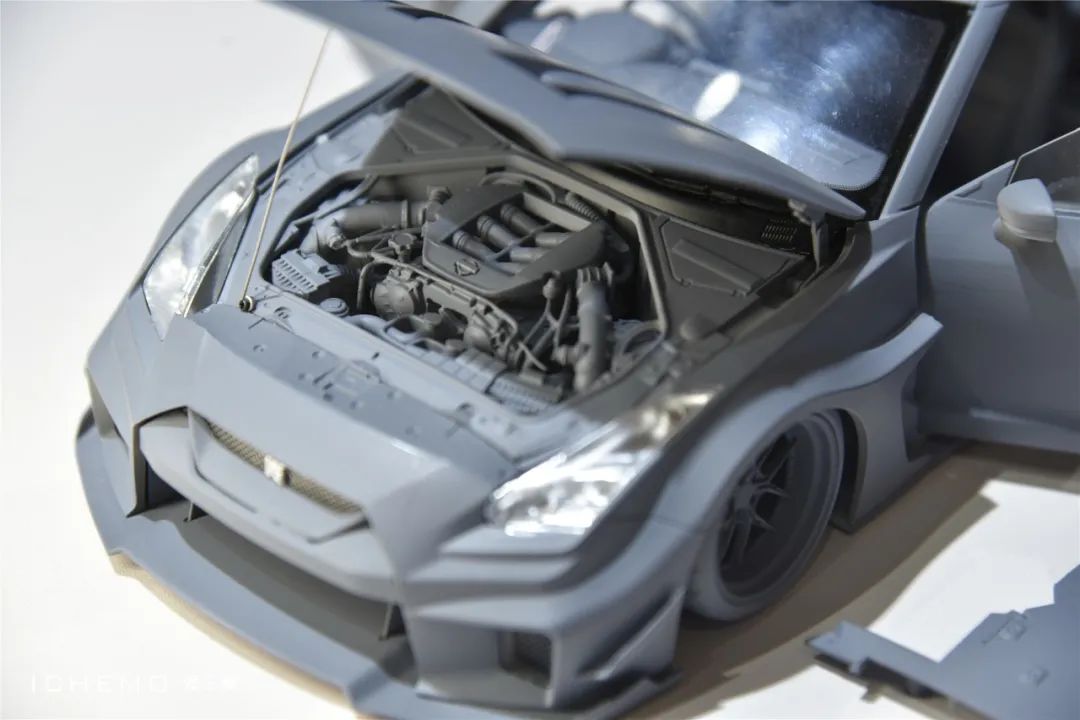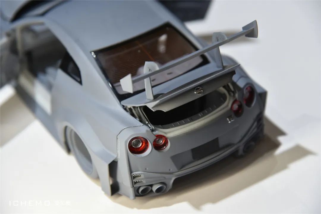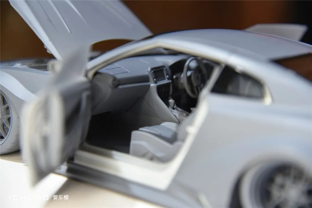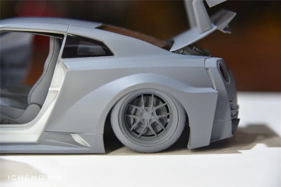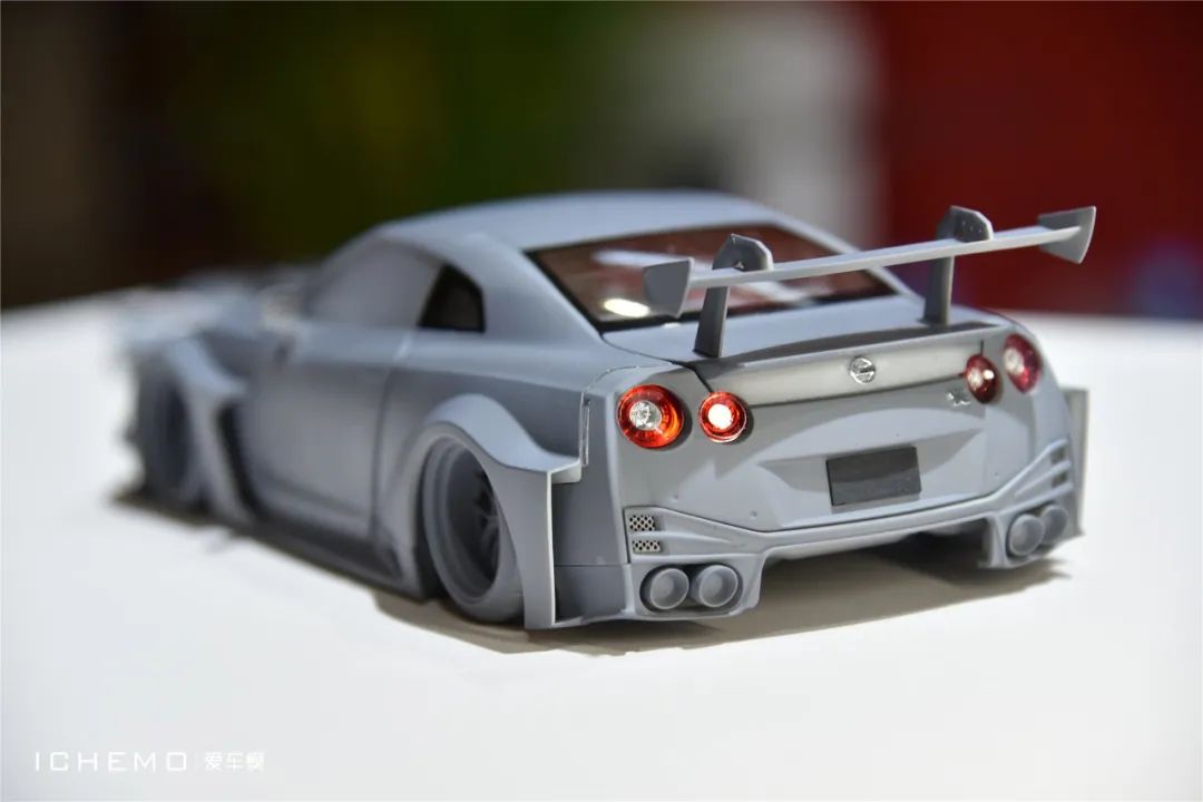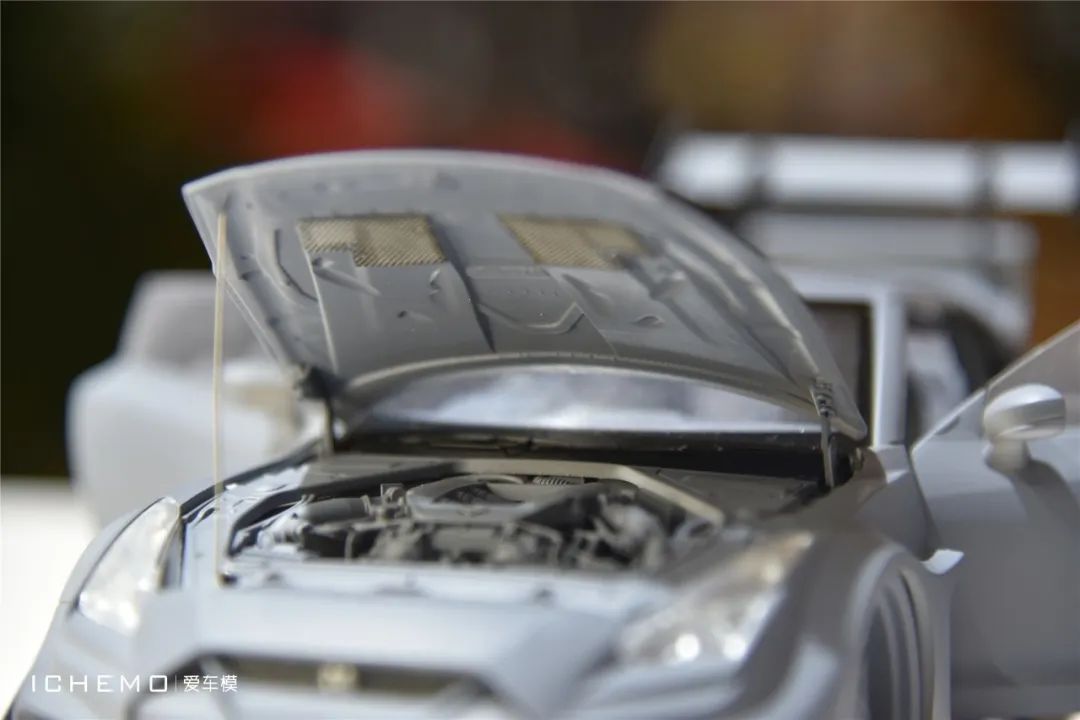 同样,因为加装了繁复的宽体套件,模型与 “普通版” GT-R R35 可以通用的零部件很少 - 包括车体在内的很多配置零件都需要重新开模 - 从灰模的配置呈现来看,MotorHelix 选择了 Version 1 Kit 套件,其主要特征是高架 GT 风格尾翼。*顺便一提,PGM 展示的灰模为 Version 2 的三柱式尾翼