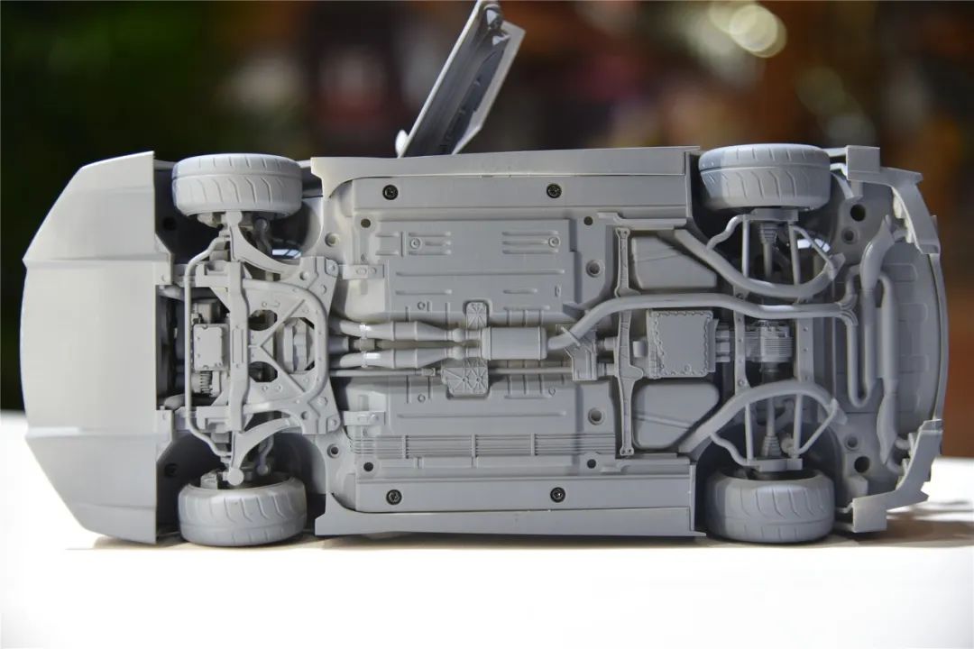 目前可展示两门/两盖件开启功能,其余的模型可动功能设计待定。需要说明的是,受车身宽体套件和悬挂姿态的影响,模型的四轮 “避震” 行程可能会受限。