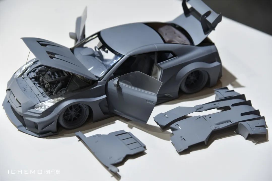 展会开箱 | PGM 1:18 合金全开 LBWK GT-R 装饰板样品 & 灰模