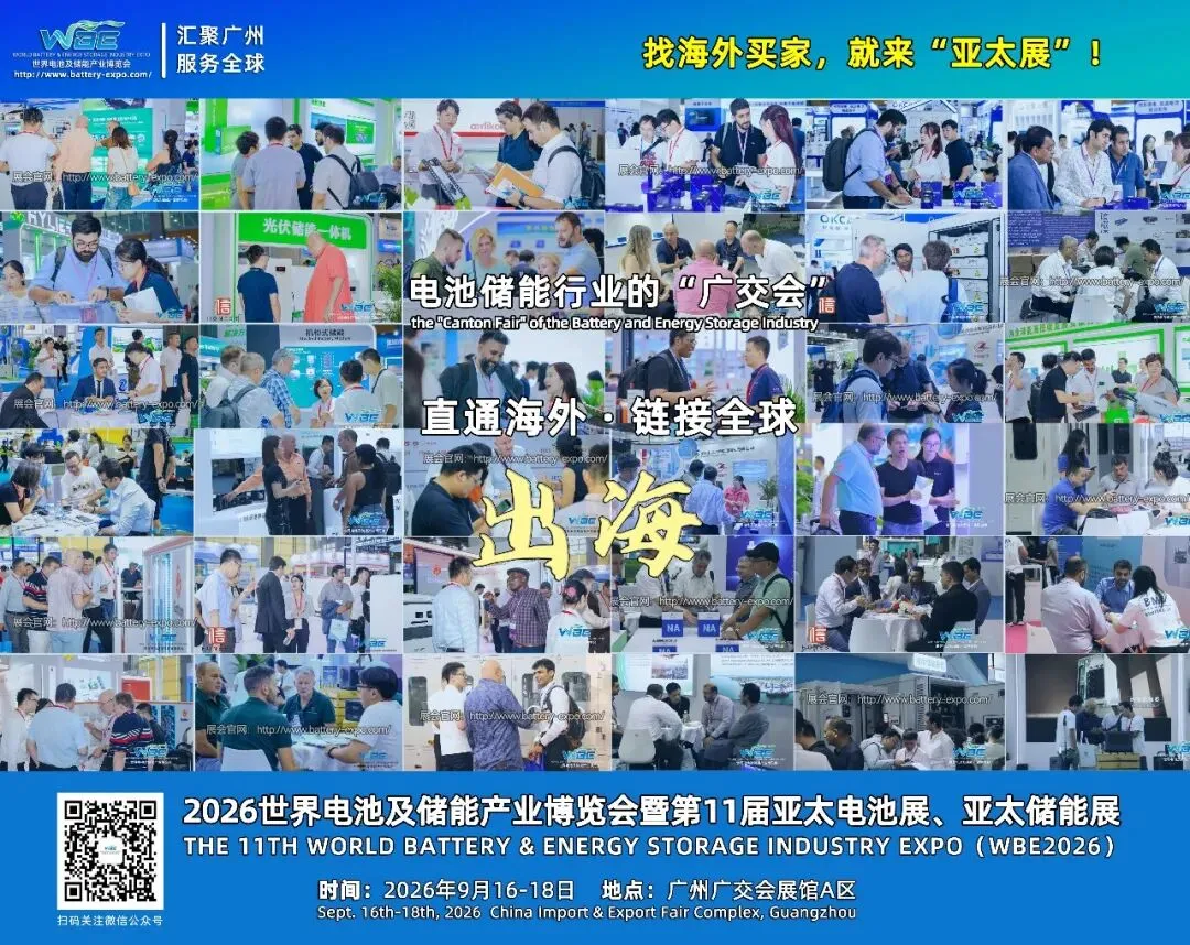 WBE2026世界电池及储能产业博览会暨第11届亚太电池展、亚太储能展,把握企业出海需求,以“赋能企业出海、链接全球市场”为核心,将于9月16日—18日在广州广交会展馆A区举办,为中国电池储能企业搭建链接全球的桥梁,助力企业突破贸易壁垒,提升全球市场竞争力。