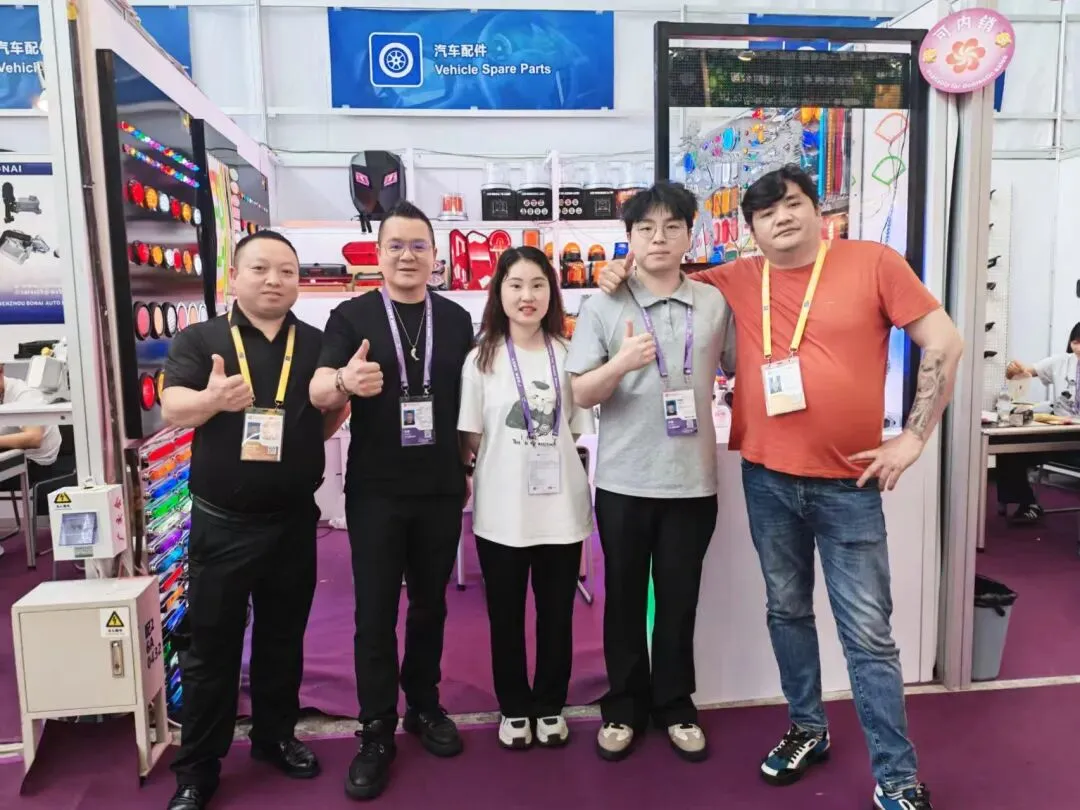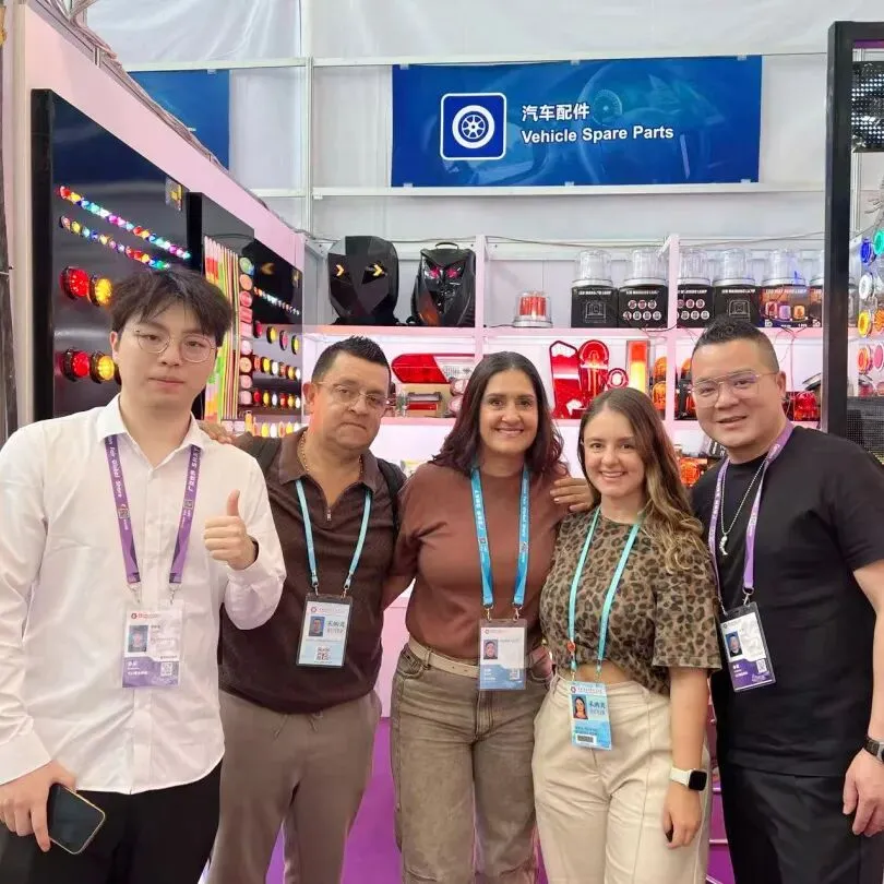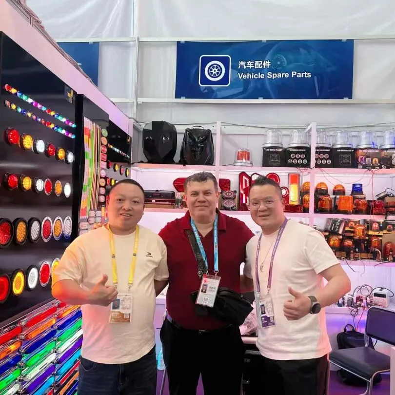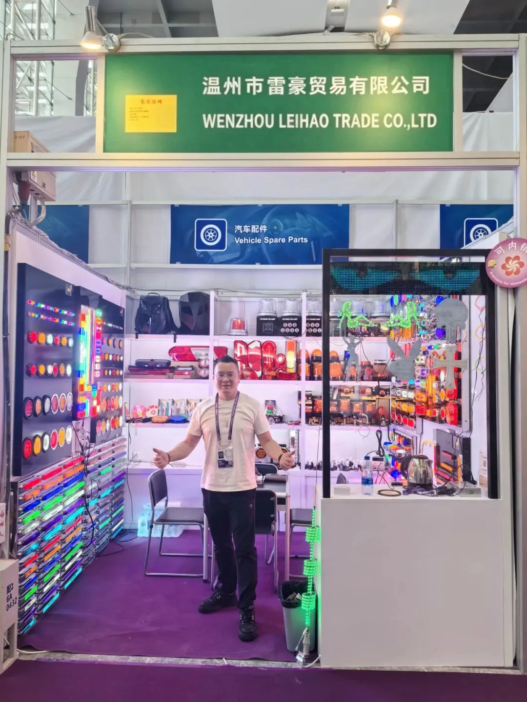 展会期间,温州雷豪展位前人头攒动,吸引了大量海外买家驻足洽谈。公司重点展示了在交通照明系统领域的创新成果与卓越品质,包括边灯、尾灯、工作灯以及“天使之眼”等多样化产品系列。
