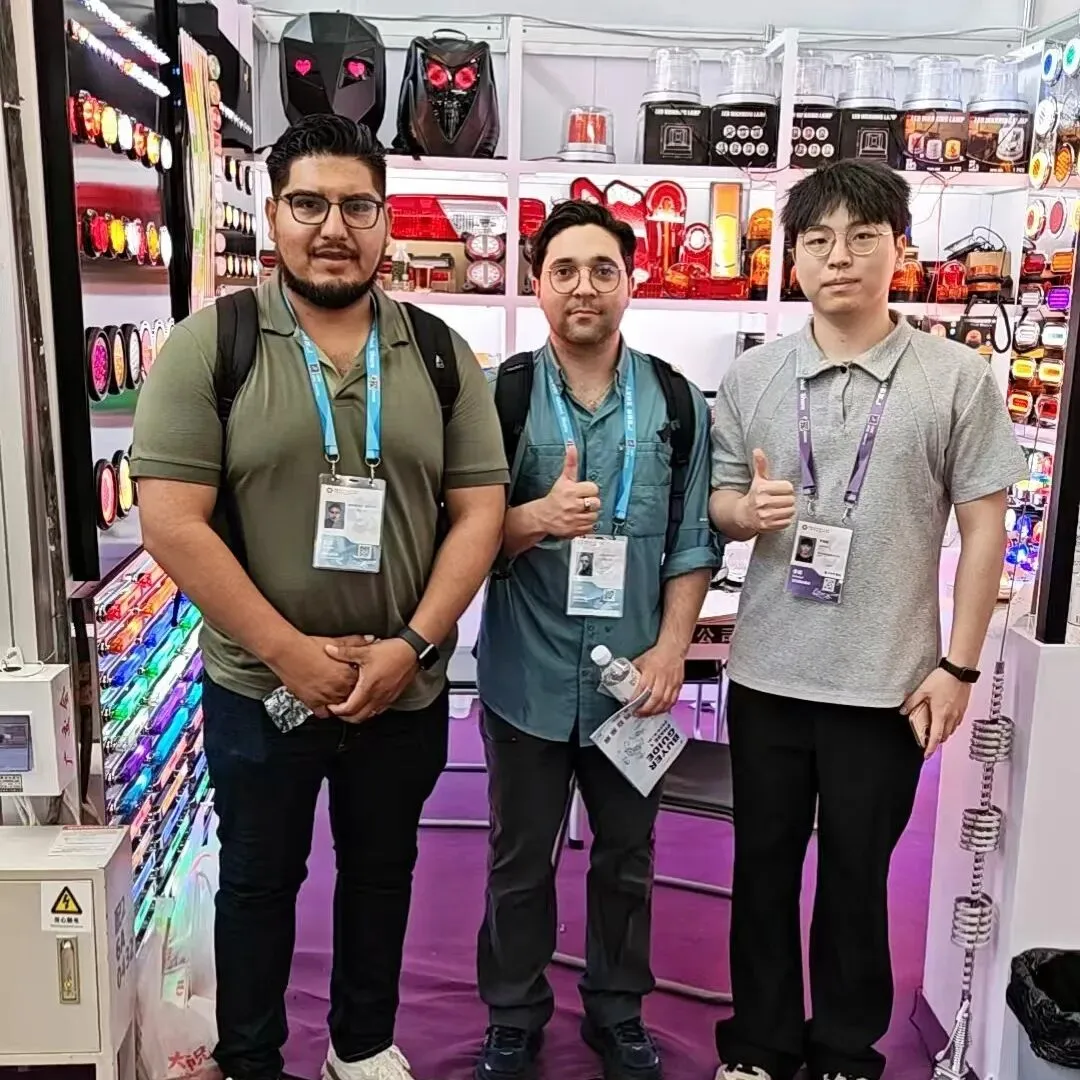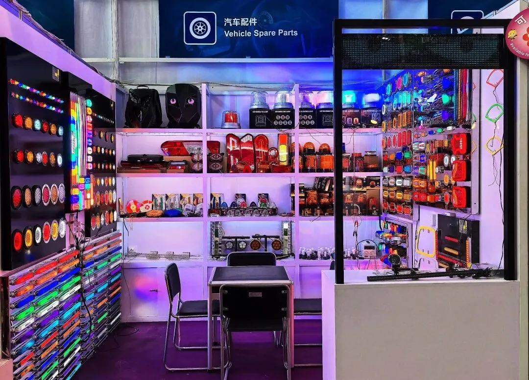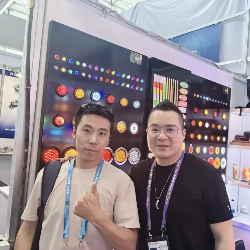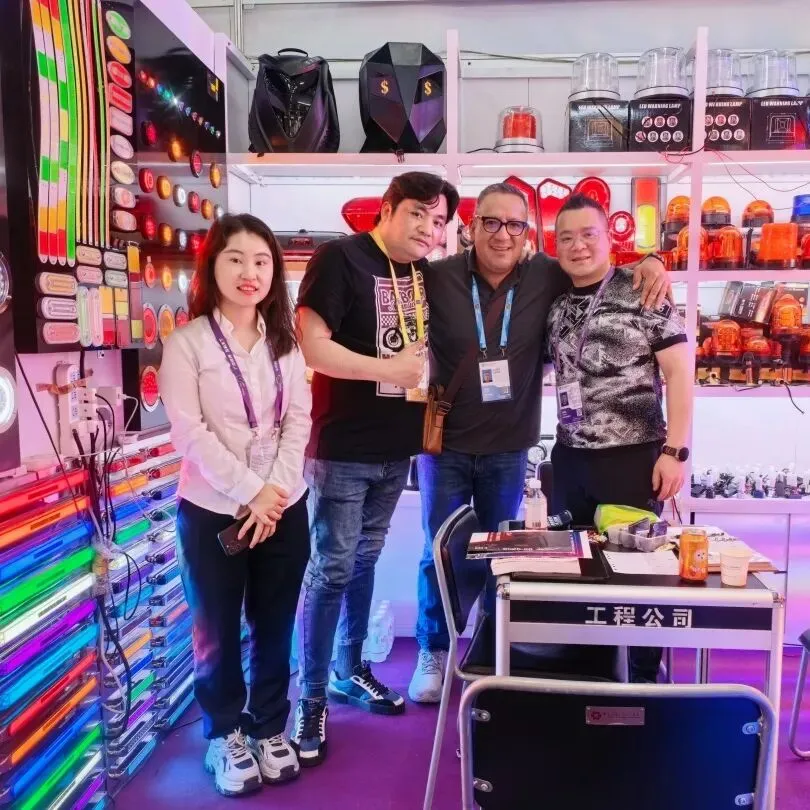 展会期间,温州雷豪展位前人头攒动,吸引了大量海外买家驻足洽谈。公司重点展示了在交通照明系统领域的创新成果与卓越品质,包括边灯、尾灯、工作灯以及“天使之眼”等多样化产品系列。